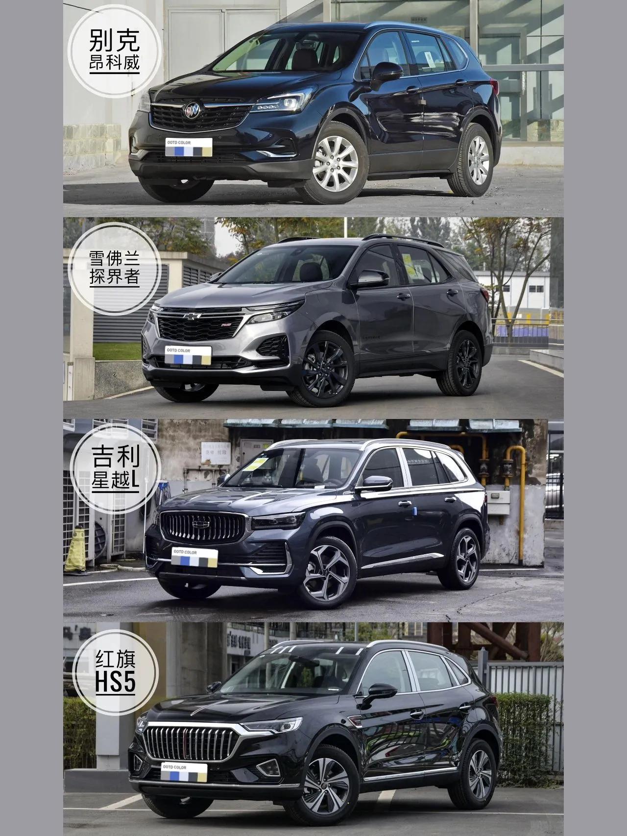 20万预算SUV:谁才是我心仪的选择?同事小张想换一辆SUV,麻烦就在于他过于纠结于合资车和国产车之间,同时预算也不超过20万。最终他锁定了以下四个选择: 1⃣️上汽通用别克 昂科威 532T两驱精英型 2⃣️上汽通用雪佛兰 探界者 535T 驭界版 3⃣️吉利 星越L 2.0TD DCT EVO两驱尊贵型 4⃣️一汽红旗 HS5 2.0T 智联旗悦版 让我们来一一分析各项特点。 动力方面,通用车型是相同平台,同样169匹马力,250牛米,红旗HS5有224匹,星越L是218匹,通过加速和巡航,星越L表现更加出彩。此外,红旗HS5和探界者都配备了6AT变速箱,星越L则搭载7速湿式双离合,昂科威是干式双离合,动力上不输。 配置方面,星越L的驾驶辅助、360环影、感应后备箱、座椅通风、氛围灯等都超越了其他三款,但国产的星越L在其他两个方面处于略逊于外国品牌的地位。 谈到购买及使用方面,通用的车才有优惠和多次保养活动。虽然红旗HS5的优惠不是很多,但其特有的不限里程的终身质保也是十分吸引人的优势,为消费者提供了很大的心理保障。值得注意的是,星越L没有什么优惠,且需要等车。 那么选哪个呢?如果你追求配置的话,星越L无疑是最好的选择,如果你更加注重保障,可以选择红旗HS5,如果你想的是性价比和动力优劣,可以选择通用别克昂科威或者雪佛兰探界者。 无论怎样,选择汽车最终还是要看个人需求和品位,小张的这款新车将是他的陪伴多年,谨慎选择才能满意驾驶。