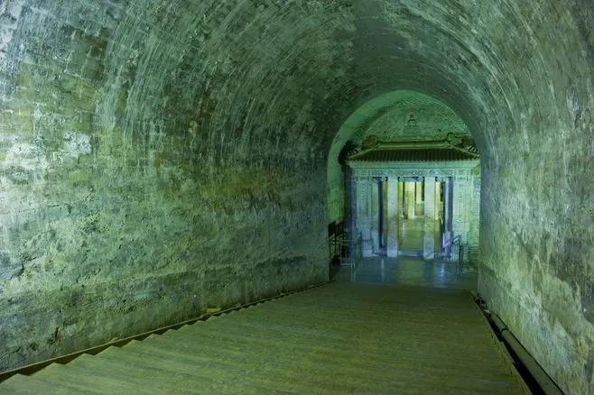 现在去乾隆地宫能看到啥震撼的东西?好东西都被孙殿英给盗掘了,现在最有价值的就是地宫本身,地宫面积比慈禧的要大,进入了之后到主椁室有三道门,地宫温度很低,墙面都有露水,最震撼的还是满墙满屋顶的佛像和用梵文刻写的佛经!最里侧的石门已经被炸碎放在了主室的两侧。乾隆的主棺被玻璃罩罩住了,还有两位皇后的棺椁用布罩着。