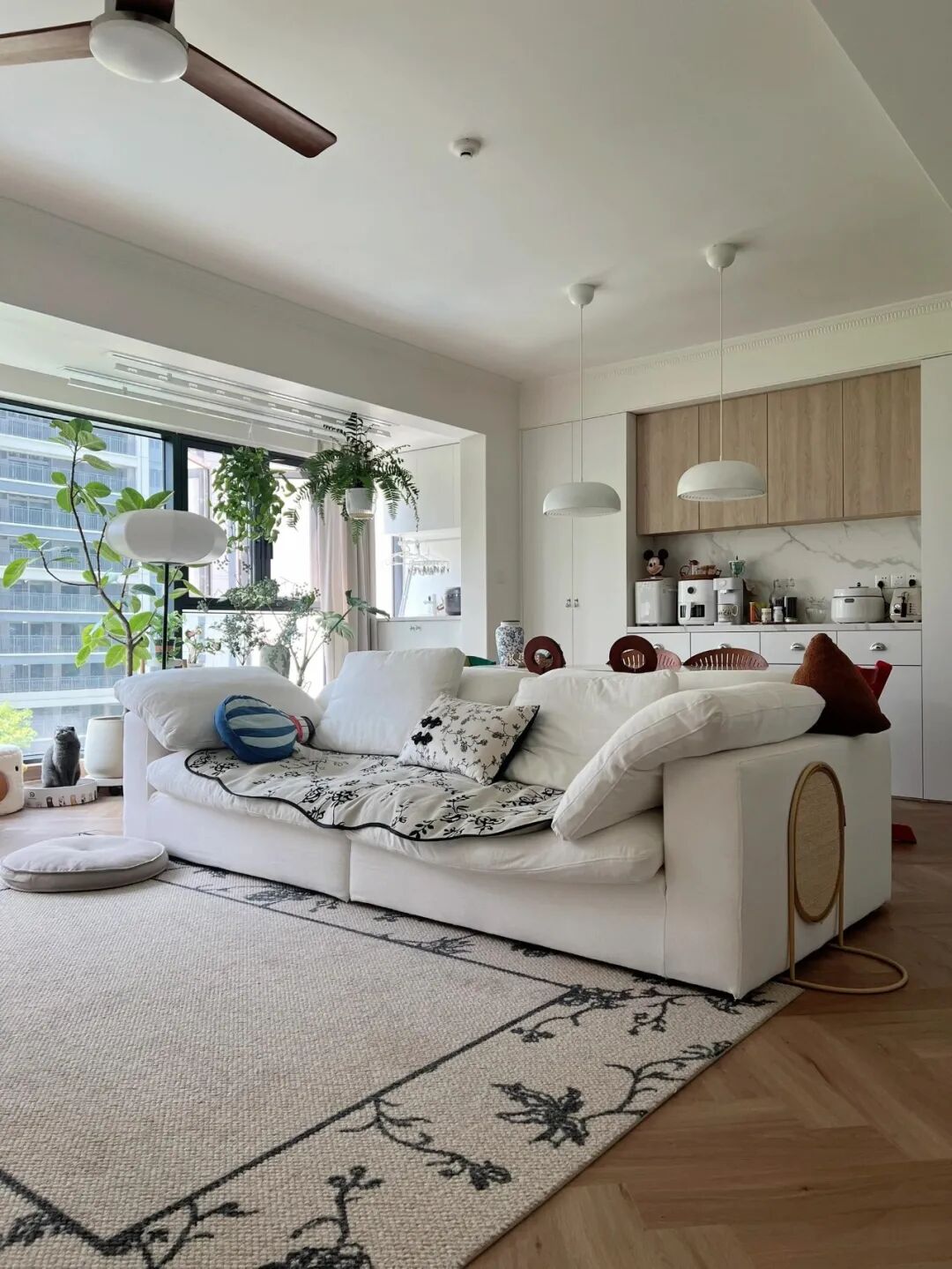 可现实中,绝大多数人买到的横厅,窗户外是楼景,望出去是对面邻居的阳台,或者一排灰扑扑的楼房。