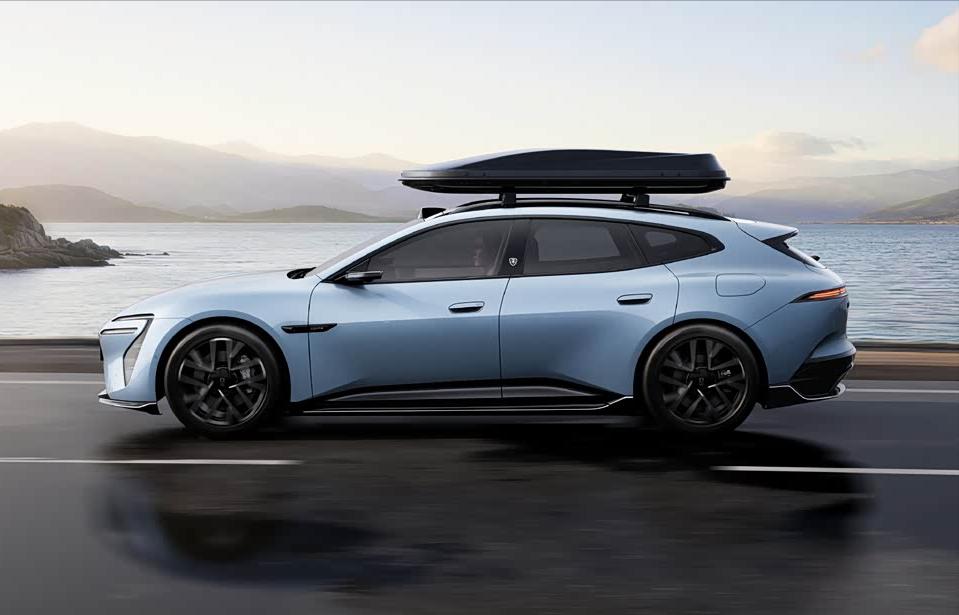 阿维塔在2月5日发布了新车官图,与之前公布的预告图和测试谍照一致,依然保持家族风格。新车前脸与在售的阿维塔06外观一致,封闭前脸搭配双层行车灯,7字形灯组下方与侧导风槽融合,内置大灯组,梯形下进气口搭配锋利镀铬前铲,前脸极具运动性。新车车顶配备了行李架和车顶行李箱,激光雷达升级到华为全新规格,采用电子后视镜,车身侧面线条依然饱满,采用猎装风格。车尾丰满性感,配备扰流板,尾灯平直细长,采用半环形贯穿设计,后挡风玻璃尺寸较小且倾斜角度大,整体姿态低趴宽大,相较传统轿车更显延展性与整体感。