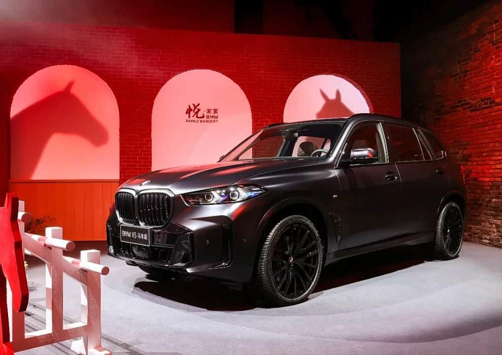 宝马在2月5日发布了新车官图,作为中国市场专属车型,该车以农历马年为核心主题,并融入敦煌文化元素。新车外观以在售X5为基础,采用“磨砂宝石青”专属哑光车漆,经典双肾格栅完全黑化,全新样式熏黑轮毂,搭配黑色排气装饰组件,整体风格更显深邃尊贵。此次车标依然是老版本样式,并未配备全新设计蓝天白云标。与在售常规版相比,限量版新增专属设计元素,同时取消了常规版的镀铬装饰条,转而采用熏黑处理以呼应主题,在轮圈中心盖、侧裙等部位点缀金色“马”形徽标,进一步强化专属身份。