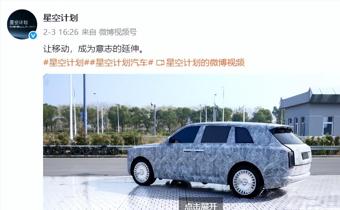 除了现场展示新车预告图,旗下的官方媒体“星空计划”也在其社交媒体上展示了一款外形酷似库里南的新车型,该车外观与预告图极为相似,尾部、前脸以及侧面的对开门都与库里南接近。对于该车的具体进展以及上市时间,官方均未提及。
