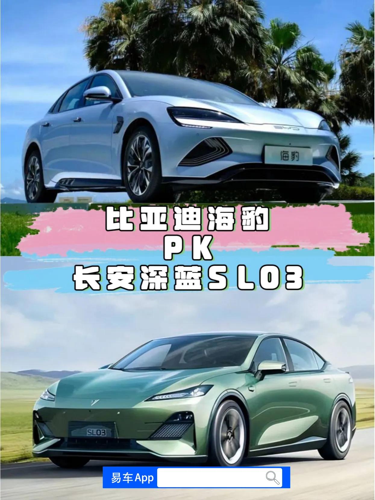 国产新能源车比亚迪海豹VS深蓝SL03长安深蓝SL03和比亚迪海豹都是国产新能源轿车,两者似乎很难区分。但是,它们之间有着许多不同之处。让我们来看看两者之间的比较。 价格 比亚迪海豹售价21.28—28.98万,而长安深蓝SL03的售价为17.98—23.18万。 在价格方面,长安深蓝SL03更为实惠。 尺寸 比亚迪海豹的尺寸为4800/1875/1460mm,轴距2920mm,而长安深蓝SL03的尺寸为4820/1890/1480mm,轴距2900mm。两辆车的尺寸差距不大。 外观 从外观上看,两款车型都采用封闭式中网,下包围呈梯形。要区分两车的前脸,需要看大灯和日行灯的形状。然而,长安深蓝SL03的尾灯更具未来感,掀背门的设计还更加方便搬运大件物品。比亚迪海豹的后备箱则更为传统,专注于运动风格的下包围。 内饰 比亚迪海豹采用灰蓝+黑的全新撞色设计,拥有海洋设计语言,中控区域线条流畅,给人低调奢华的感觉。长安深蓝SL03的内饰则更为简洁,提供黑色和重色两种内饰颜色可选。另外,长安深蓝SL03还配有14.6英寸中控悬浮式大屏,整体拥有强烈的科技感。 动力 比亚迪海豹有四款车型,分别为3和续航版本,续航里程分别为550/550/700/650公里。长安深蓝SL03则有纯电、增程和氢电3种动力版本,纯电续航有515公里和700公里版本。增程动力综合续航可以达到1200公里,氢电版本的续航超过700公里。 总体上,长安深蓝SL03的性价比更高。 综上所述,长安深蓝SL03和比亚迪海豹在外形,内饰和动力系统等方面都存在差异。两款车型都有各自的特点,消费者需要根据自己的需求和喜好来选择。