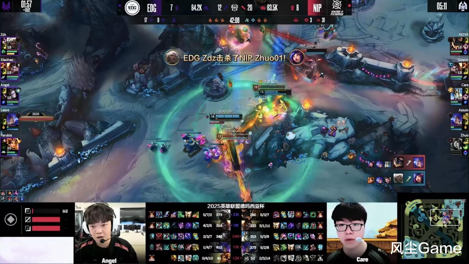 英雄联盟德玛西亚杯,第二阶段已经开赛了,上一个比赛日,A组EDG和NIP展开对决,两队鏖战三局,最终EDG以2:1比分赢下比赛,这场BO3的看点不算高,但ZDZ的赛场表现,很受观众认可,他的打法跟TheShy真的很像,一言不合就开干,有点Shy哥代餐的感觉,打弱队是真强势。