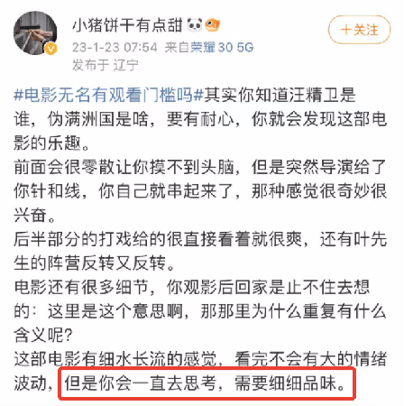 前事不忘,后事之师,看一部电影,不仅要看故事,也要看时代的大背景。抛开这点,也只能是看个热闹,《无名》不止热闹,更值得细细品味。