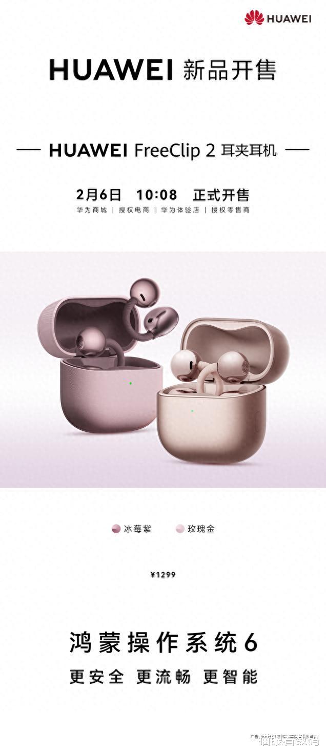 华为FreeClip 2新色玫瑰金冰莓紫已于2月6日正式开售,官方售价1299元。这是一次科技向美学的温柔致敬,也是数码产品向时尚跨界的大胆探索。而它与周大福的跨界联名和星闪加持后的实力呈现,则向消费者证明,一款优秀的开放式耳机可以有好的听感体验,也可以是一件艺术奢侈品。新年新体验,作为电子配饰的华为FreeClip 2 耳夹耳机无疑是那个能够在你耳边C位闪耀的选择。
