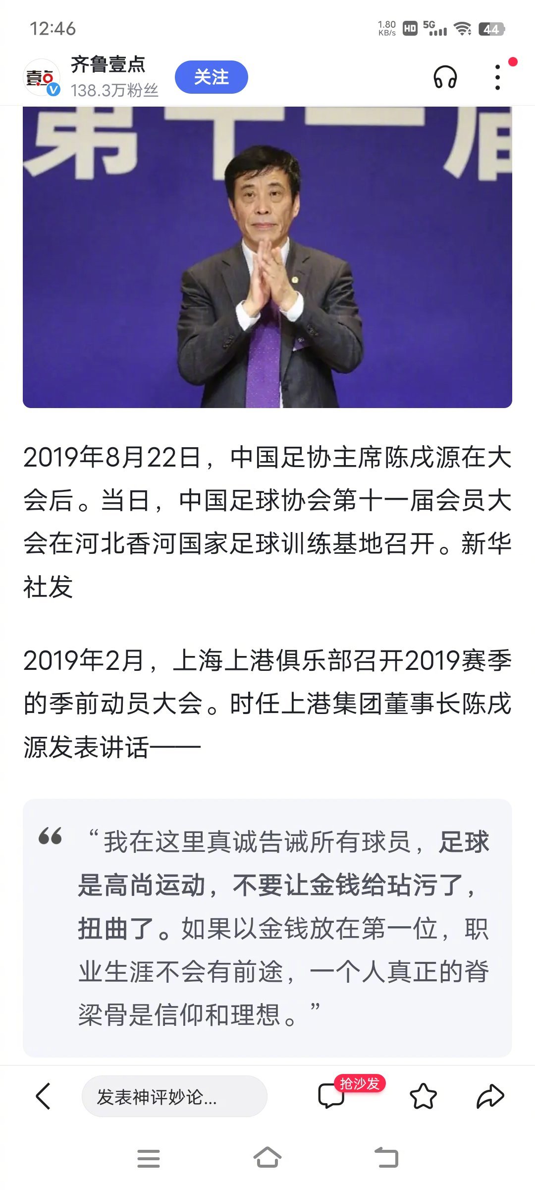关于抓间谍,胡锡进为自己壮胆说“心底无私天地宽”,不知道为什么,我突然想起了以前陈戌源的讲话:我在这里真诚告诫所有球员,足球是高尚运动,不要让金钱给玷污了,扭曲了。如果以金钱放在第一位,职业生涯不会有前途,一个人真正的脊梁骨是信仰和理想。