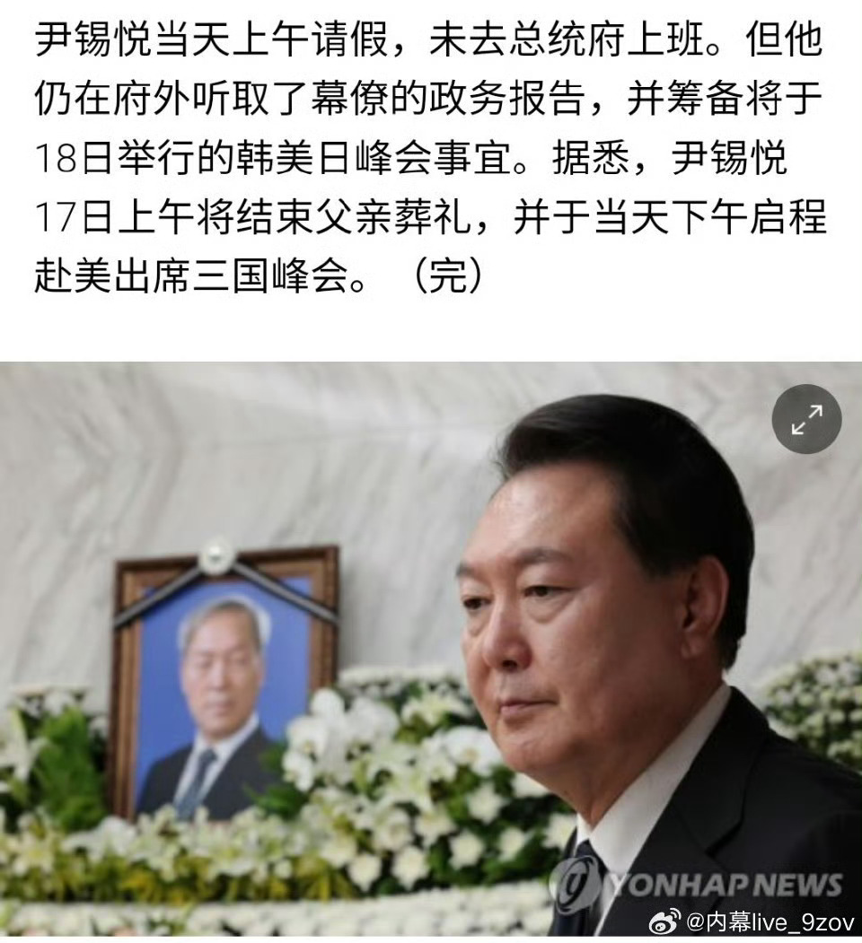 尹锡悦,为父亲守完灵,要去美国见父亲们了。