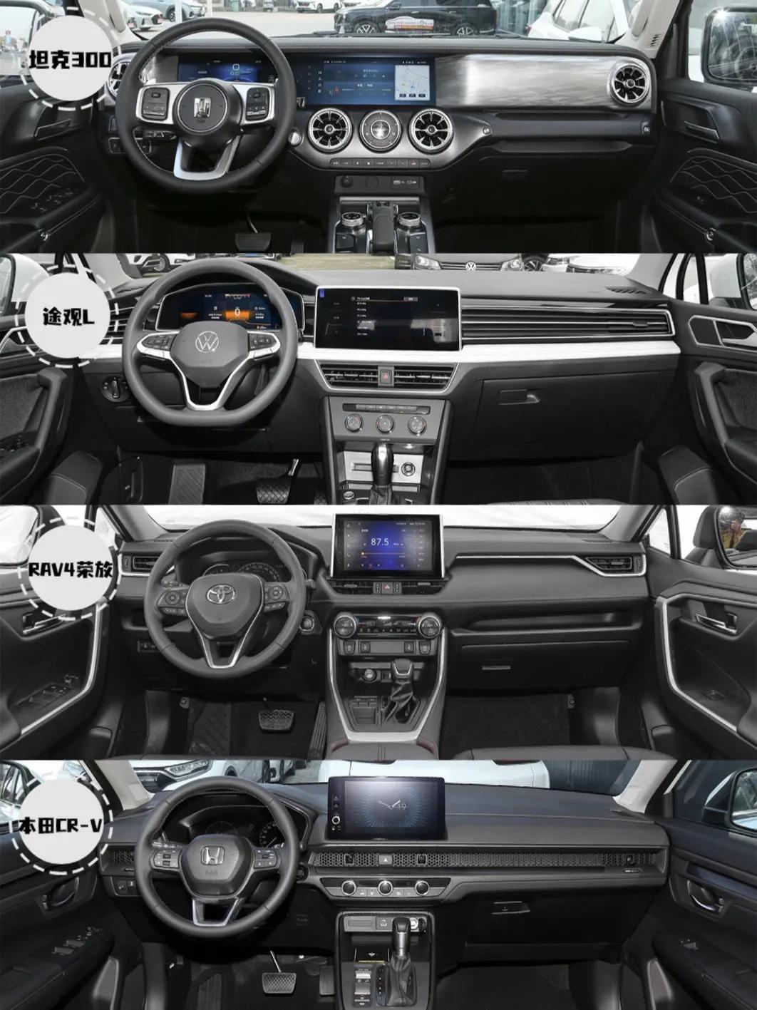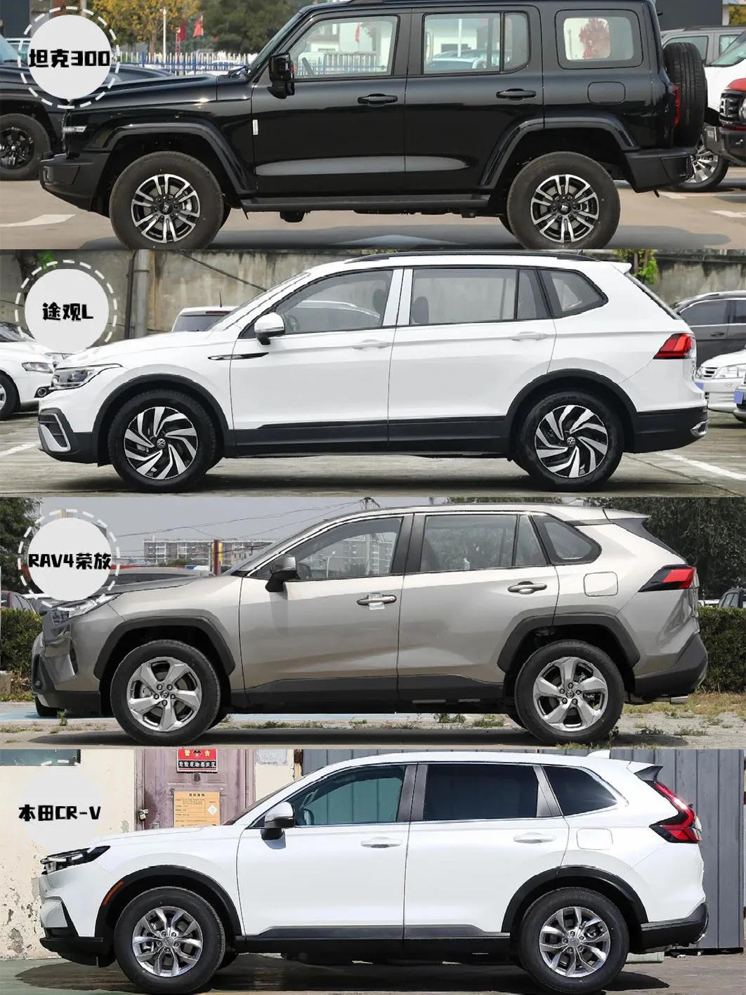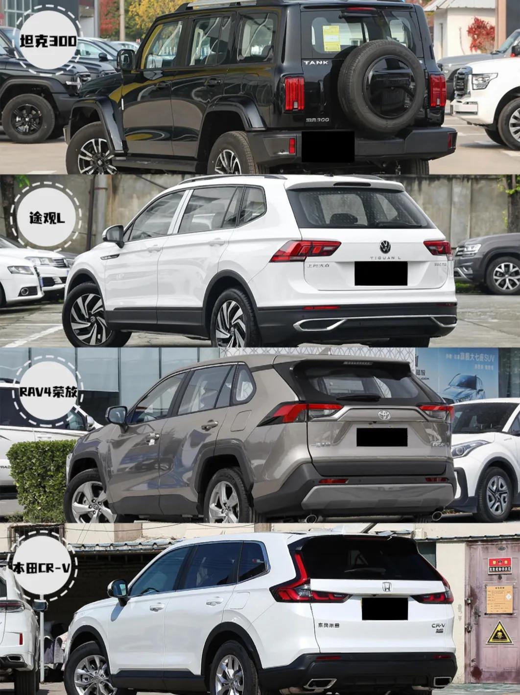 一篇文章看懂这四款中型SUV 你是否也在选择一款中型SUV时犯难呢?这篇文章将为你推荐四款中型SUV,并分析其中优缺点,让你轻松选出最适合自己的一款。 首先,推荐最抢眼的坦克300。这款2023款城市版2.0T的SUV造型颇为帅气,越野性能好,配置丰富,空间够用,唯一的缺点就是油耗偏高。推荐搭配适时四驱、中央差速锁、低速四驱等配置。 其次,大众途观L也不容小觑。该款SUV有着出色的空间,动力更是强劲,搭载着2.0T四缸发动机(186马力)+7速湿式双离合,让你在操控方面更加得心应手。而推荐配置则是ACC自适应巡航、皮/织物座椅、CarPlay/CarLife互联等。 第三,丰田RAV4荣放是一款相对安全性更强的SUV。无论是油耗还是配置方面都表现得更为出色,像360环影、7气囊、前排座椅加热等配置都符合现代化的需求。然而,空间一般,动力较弱也是该款车的短板之一。 最后,本田CR-V也相当不错,安全配置突出、空间可观、同时动力也比丰田RAV4荣放更优。推荐配置有10气囊、全景天窗、前排手机无线充电、真皮座椅等。 以上四款中型SUV各有千秋,具体适用人群也因人而异。希望通过本文的介绍和分析,大家可以更好地了解这几款车型,做出最适合自己的选择。