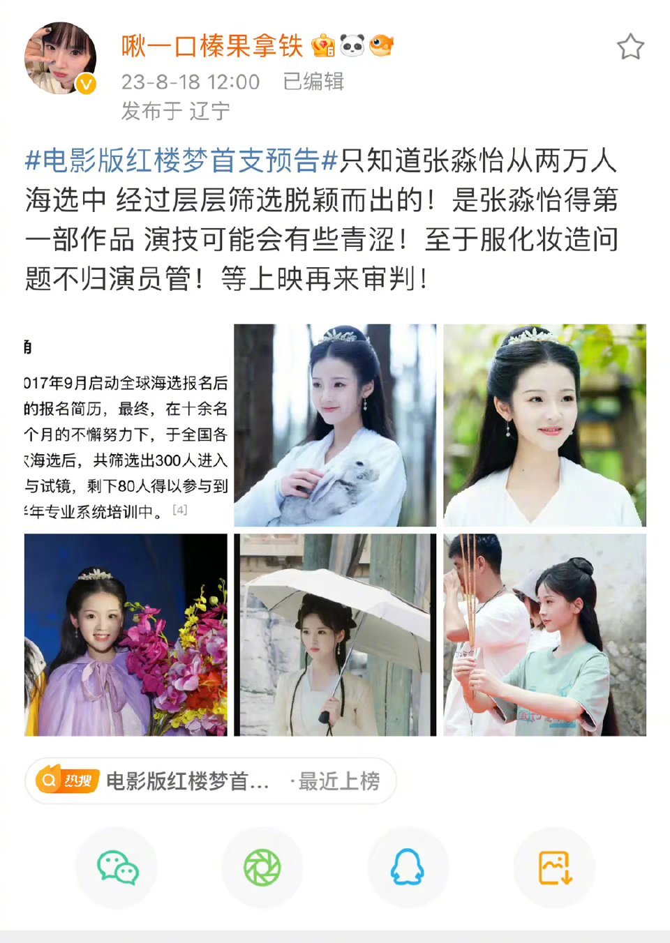 #电影版红楼梦首支预告#从全球2万人海选出来的林黛玉……