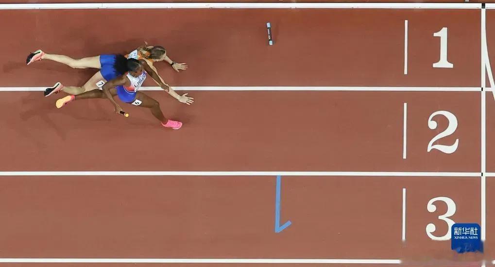 田径世锦赛400米混合接力,离终点线10米的时候,荷兰人扑倒在地!