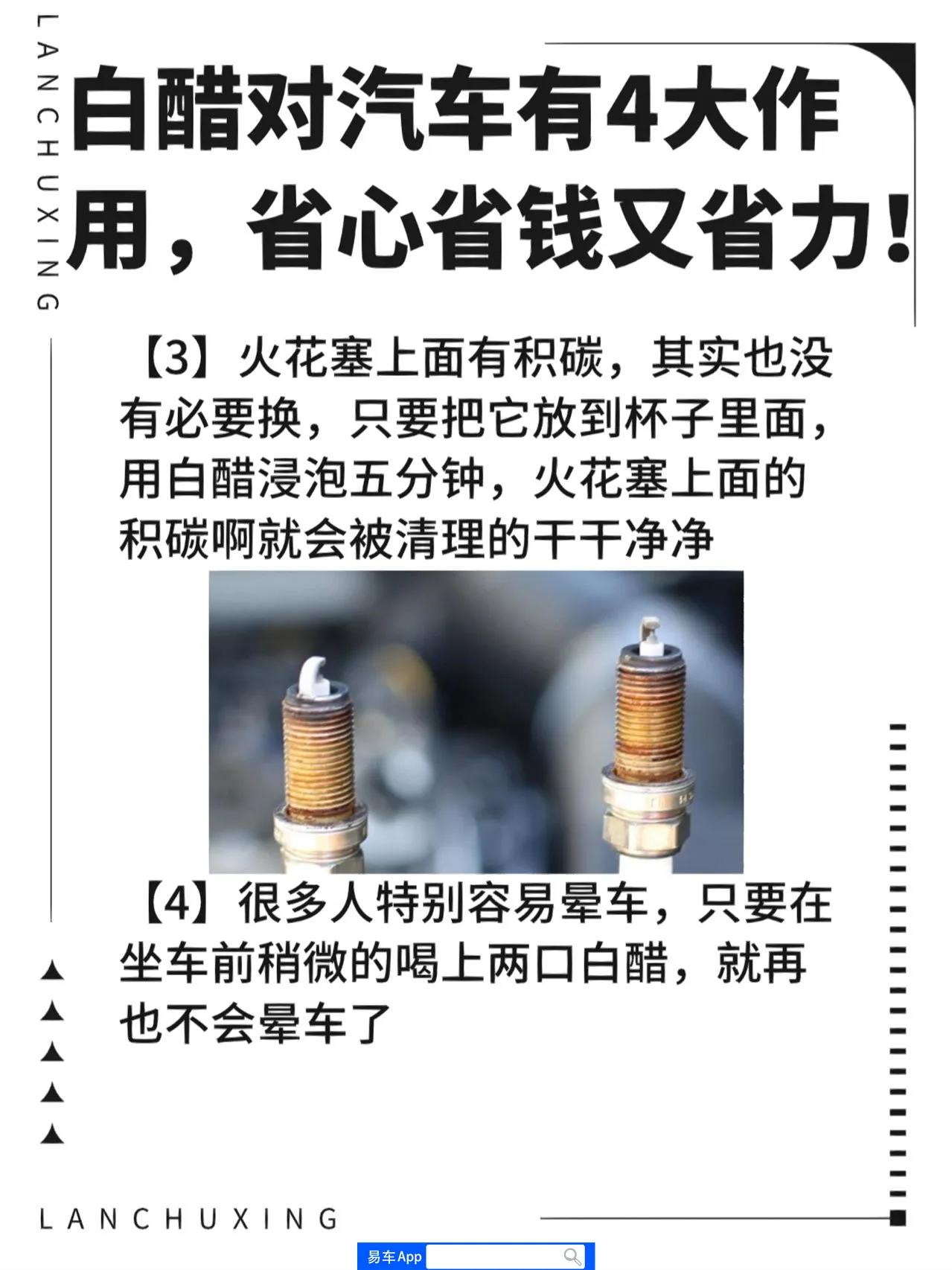 神奇的白醋:让你的爱车重新焕发光彩!在日常开车的过程中,我们常常会遇到一些小问题,比如车玻璃上有油膜,车内有异味等等。这些问题看似不大却常常使我们感到麻烦。但是,今天小编要介绍一个神奇的东西:白醋! 是的,你没有看错,普通的白醋竟然有这么多的用途!接下来,小编就要带你一起了解一下,如何利用白醋让你的车焕发新生! 首先,我们来看看车玻璃上的油膜。相信很多驾驶员都曾遇到过这个问题,特别是在雨天脏污堆积的时候更为明显。别急,我们只需要准备一些白醋和洗洁精,就能轻松解决。将适量的白醋与同等份的洗洁精混合后,倒在玻璃上,用清水冲刷干净,油膜就会被完全清除了!不仅如此,还能让玻璃恢复透明度,开车更加安全。 其次,如果你的车内有烟味或异味,不妨也试试白醋。将适量的白醋倒在毛巾上,然后用它擦拭中控台以及座椅等部位,异味就能快速去除了。不仅如此,白醋还有消毒杀菌的作用,可以深层清洁车内,使空气更加清新。 此外,白醋还可以用来清洁车床单、床垫等部位,消除霉味和细菌。同时,白醋还能清洗车漆等部位,恢复原本的颜色和光泽。 总之,白醋真的是一种非常实用的物品,不仅价格便宜,而且还环保有效。相信经过使用之后,你的爱车也能焕发出新的光彩,而你也能享受更加舒适的驾驶体验。赶快行动起来吧!
