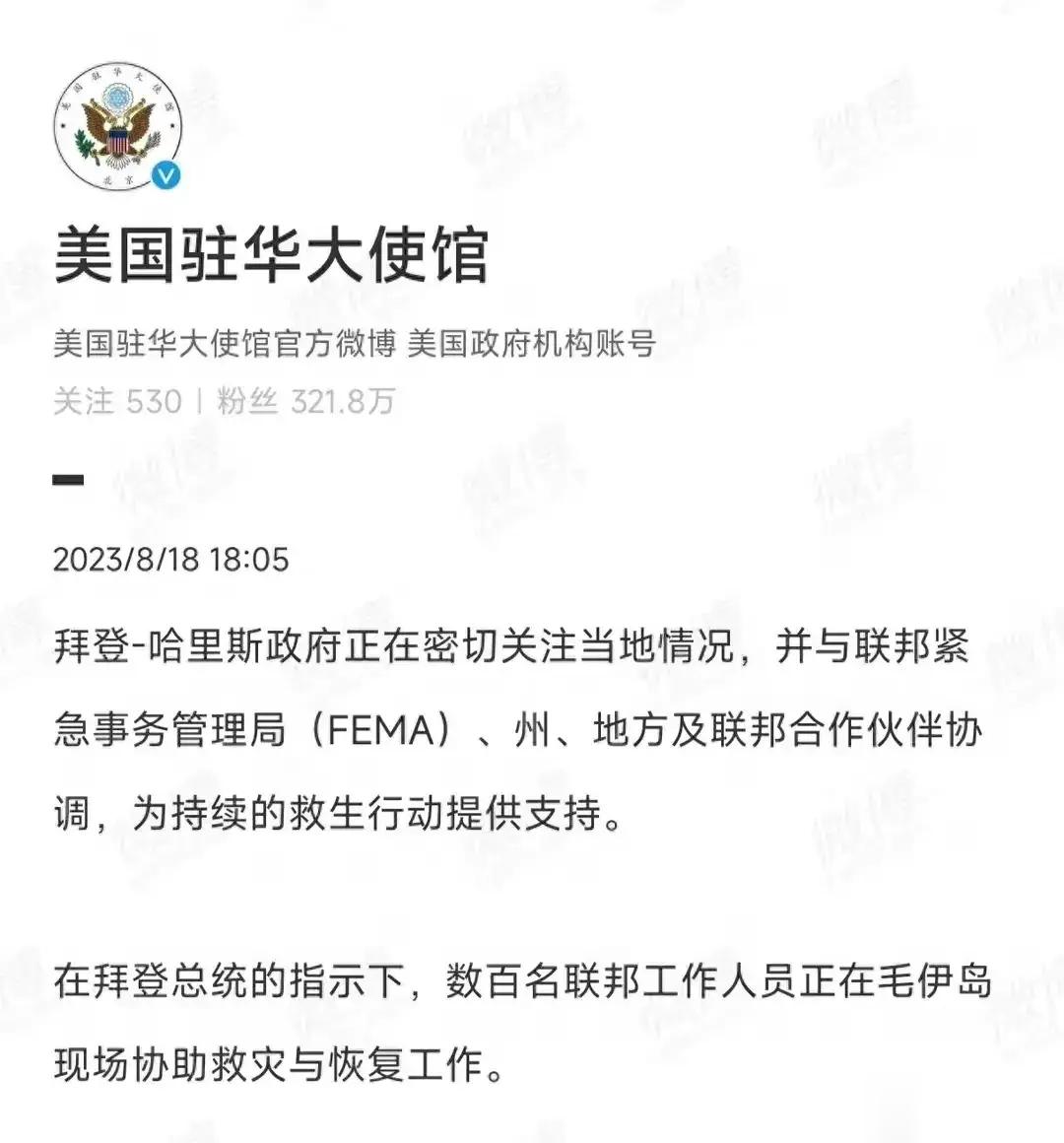 蓝蓝天天 6 2023-08-31 19:50 夏威夷山火的出现,最大利益者是谁,这场火就是谁放的。夏威夷人认为那块地本来就是他们的,而利益者说那块地被一帮刁民占了。在利益关系面前,所有的正义与邪恶其实都一直在互相反转。这说明什么?说明我们中国人不用去关心那场山火有多大,那是别人家的事。一旦战争爆发,你所同情的那群人说不定第一个去打你。 拒绝者 回复 看客而已 09-11 07:05 简单来说美国就是制造战乱的国家,所以我们不需要同情他们 看客而已 回复 09-02 15:42 不知道你想说什么?
