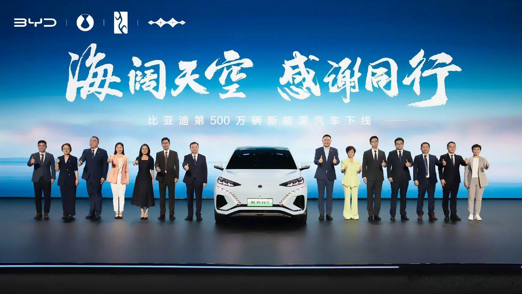 前几天,比亚迪的第500万辆新车刚刚隆重下线,比亚迪是全世界第一家达成500万辆新能源汽车目标的汽车品牌,仅仅两年,就从100万辆到500万辆,相信很快就能实现1000万辆了!以前的汽车市场是属于BBA的,现在和未来的汽车市场是属于以BYD为代表的中国新能源汽车的!