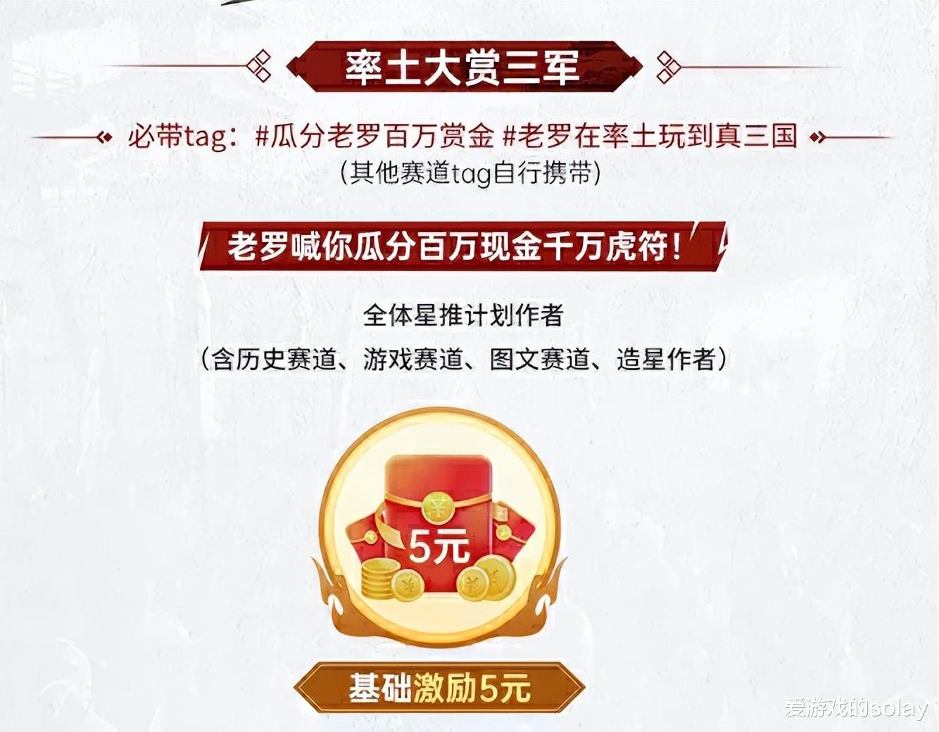 而且在开直播之前,老罗就已经拿出了百万赏金给爽玩服玩家们瓜分。只要在抖音带着指定Tag记录自己的爽玩服游戏时刻,就能拿到保底5元,最高2.5万元的奖金。这两波羊毛一放出来,哪怕是那些平日里不怎么看老罗的玩家,也直呼这哥们能处。