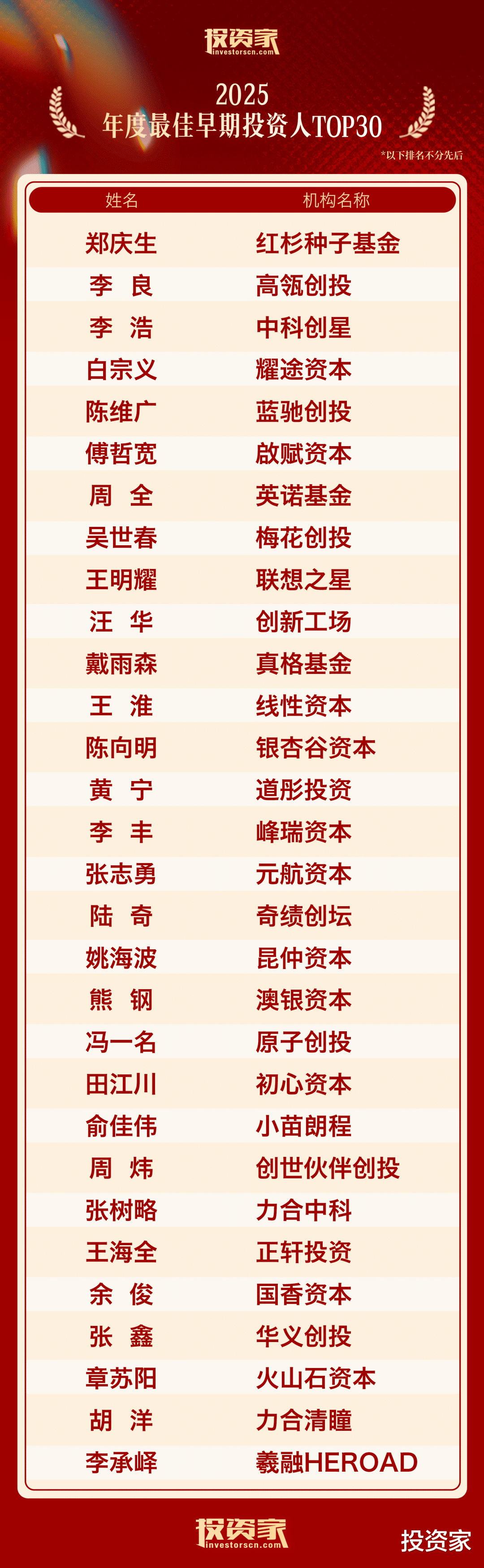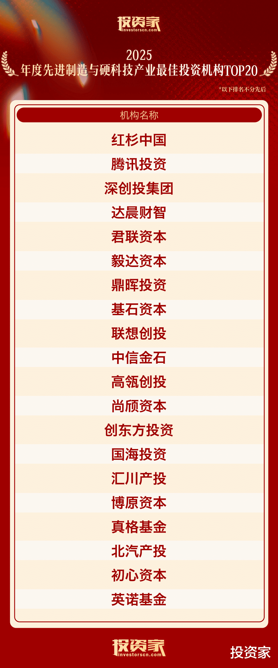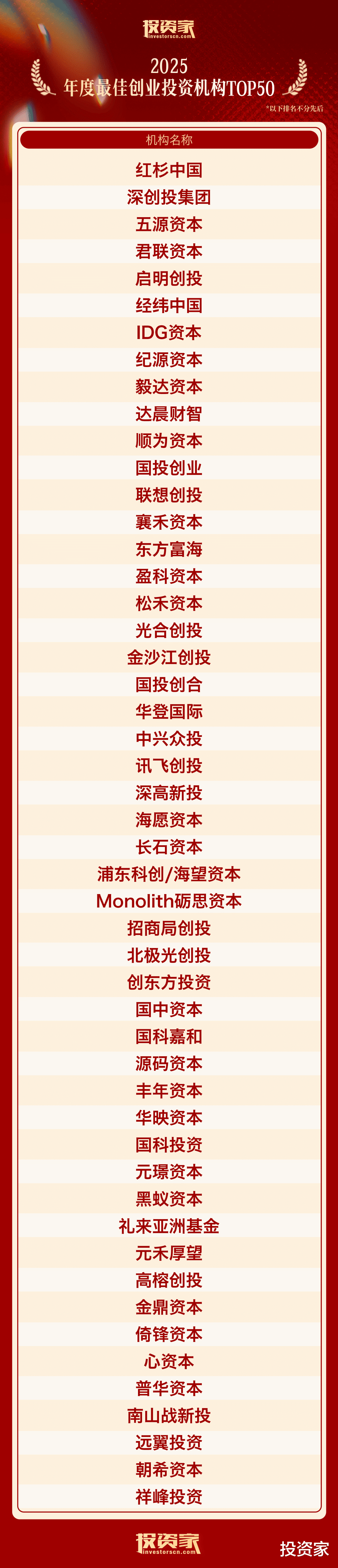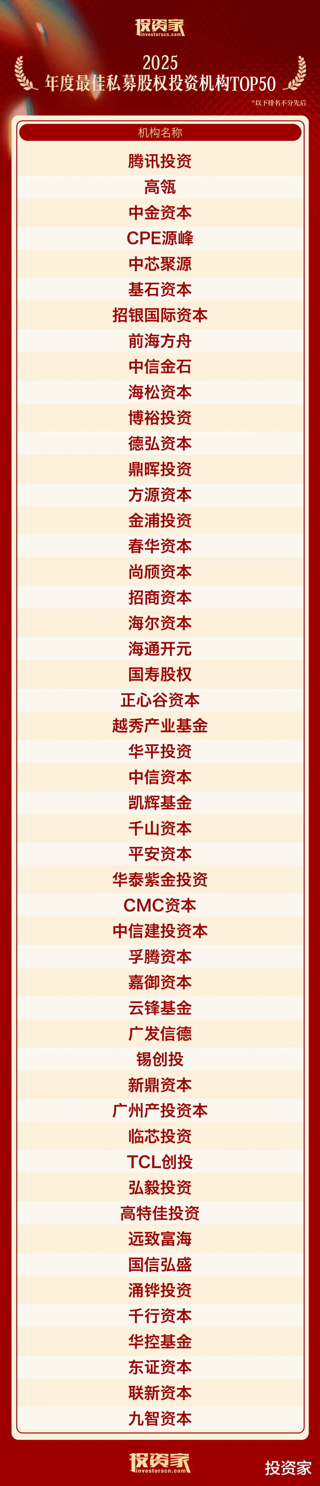 以下为“投资家网·2025股权投资年度榜单”: