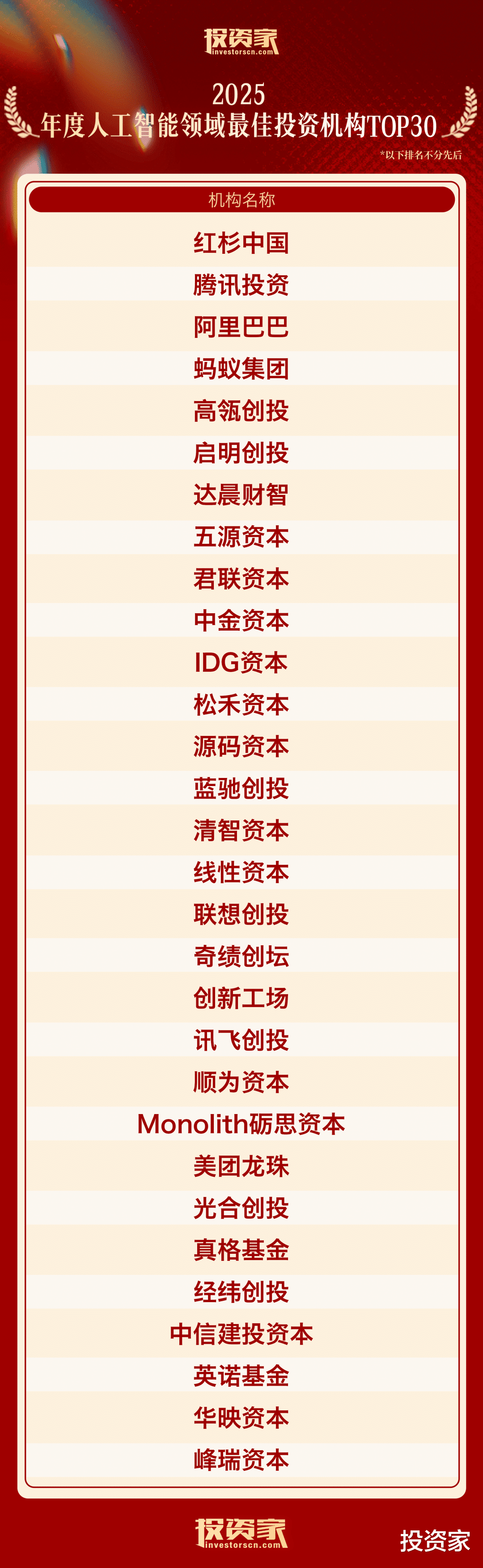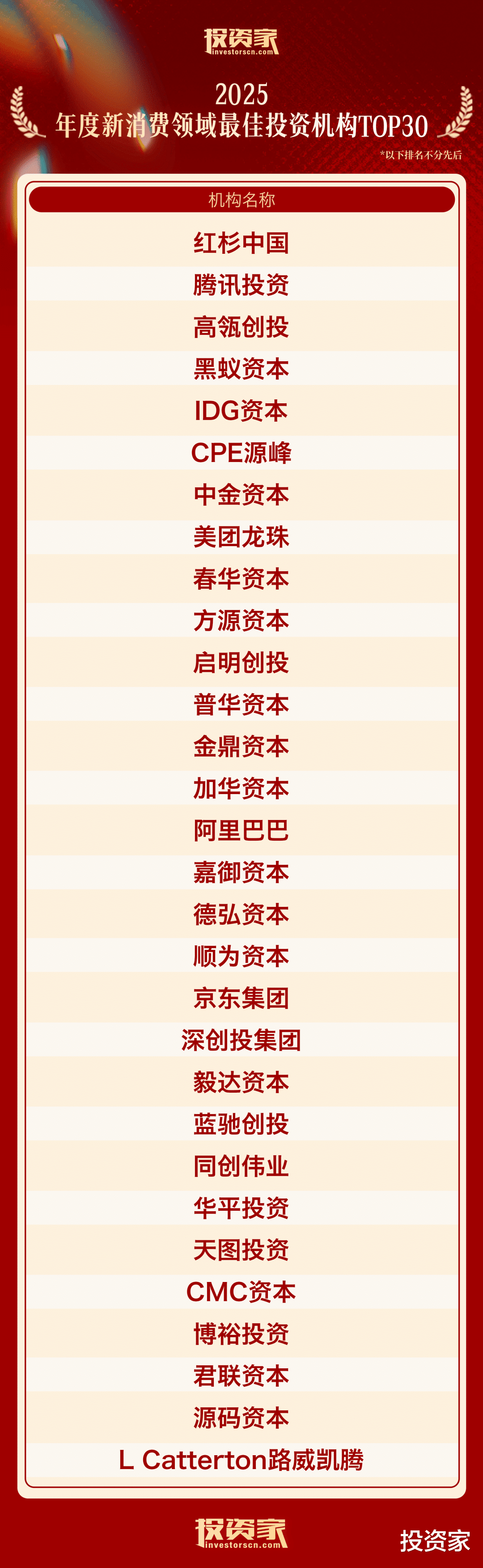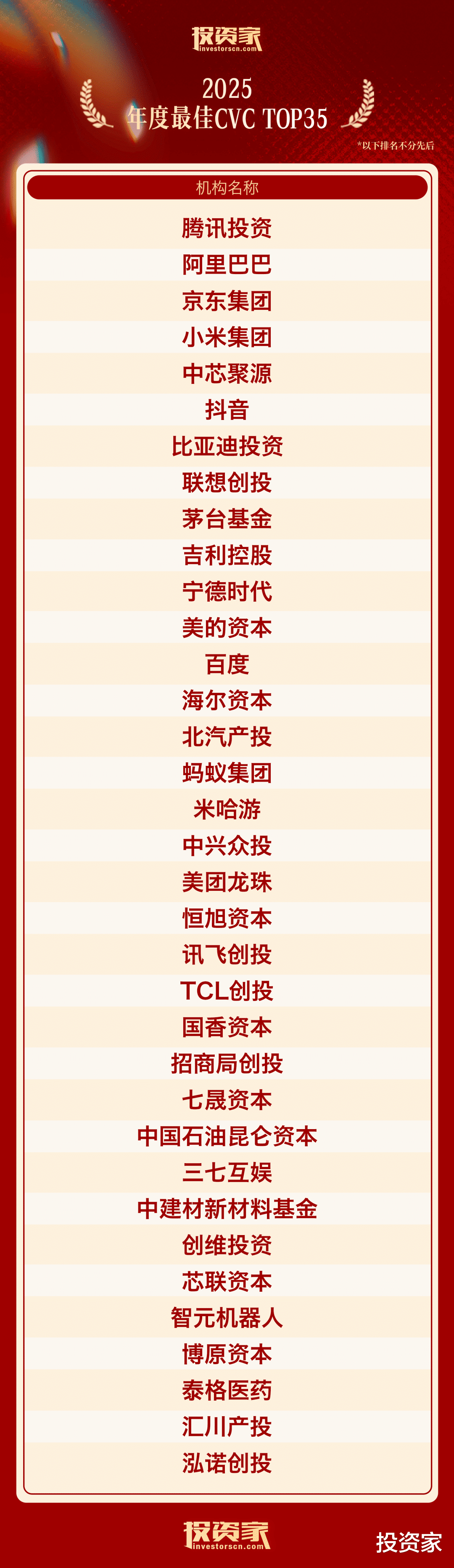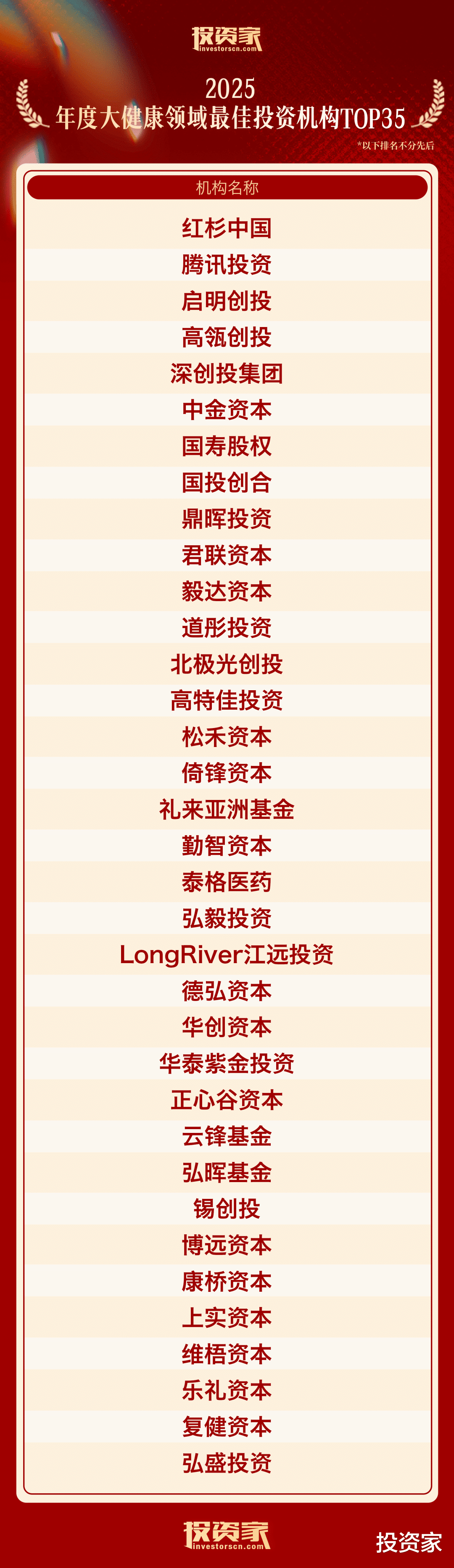 以下为“投资家网·2025股权投资年度榜单”: