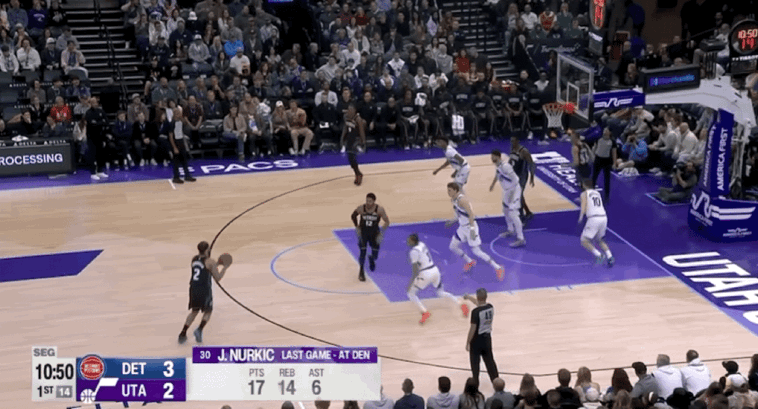没有坎宁安,活塞显得有些杂乱无章,被爵士单节轰出44分高分,持续处于被动状态。坎宁安在本节最后一攻回归,他引领活塞打出三线配合完成三分终结,成功将分差追到8分进入第四节。