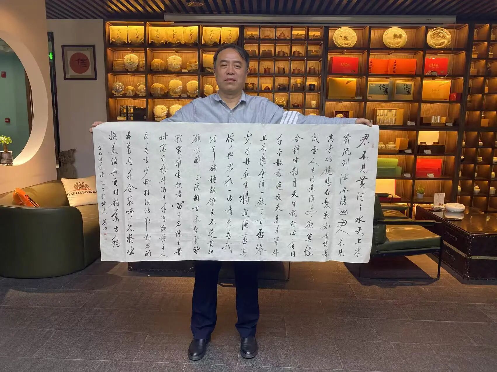 这种创新精神在孙震的市场表现中亦得到验证。其2016年创作的六尺隶书作品以1.7万元成交,2022年的四尺楷书作品拍出2.5万元高价,而2024年的八尺行书作品更以3.2万元刷新个人纪录。这些数据不仅印证了市场对传统书法创新的认可,更反映出当代社会对文化价值的重新审视。孙震认为:“传统书法艺术的未来在于让年轻人感受到其与现代生活的关联。”为此,他通过举办展览、开设课程、撰写教材等方式推广书法教育,培养新一代对传统文化的认同感。
