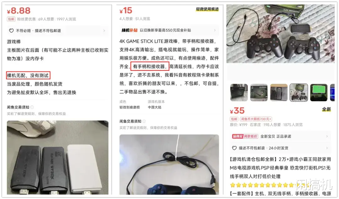 它全新也不贵,PDD带32G卡+双柄是48元。而小黄鱼从几块钱到几十元不等,商家卖裸机不带配件8.88元,个人卖带手柄却内存卡进不了系统15元,正常全套最低35元,可以用35元作为参考价。