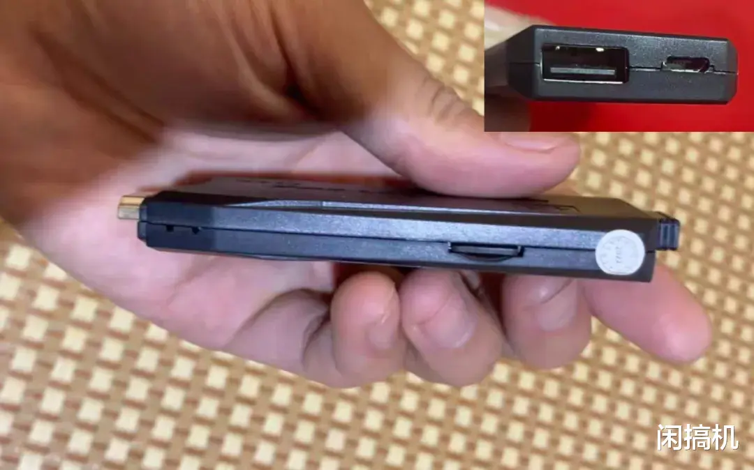 另一头是USB接口和MicroUSB接口,侧面还有TF卡槽,所有游戏都存在TF卡里,厂商宣传口径是32G内置1万个游戏,64G内置2万个游戏,128G内置4万个游戏。