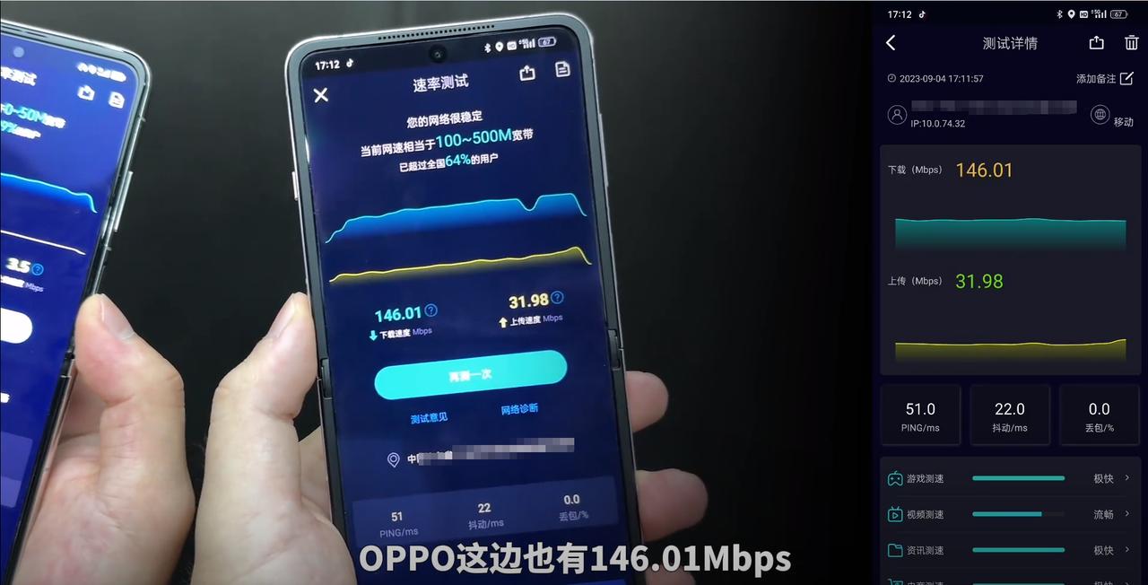 折叠屏手机的信号如何?折叠的设计会不会影响信号、网络能力,三大折叠屏实测后告诉你真相。 最近看到有网友用三星Z Flip5、华为Pocket S以及OPPO Find N3 Flip三款小折叠屏手机,进行了一次信号、网络对比。首先在室内环境中,三款手机的信号都是满格,其中三星下载速度是97.41Mbps,OPPO下载速度是182.7Mbps,而仅支持4G的华为下载速度仅有5.56Mbps。 然后是地下停车场环境中,三星下载速度是82.1Mbps,OPPO下载速度是164.47Mbps,而华为这款稍差一些,下载速度是28.93Mbps。总的来看,三星、OPPO这两款小折叠屏的网络表现还是不错的,符合5G手机的网络水准,尤其是OPPO这款,网速相当亮眼,看来追求网速快的话,选Find N3 Flip不会错的。#OPPO Find N3 Flip#
