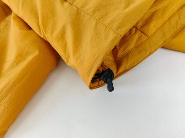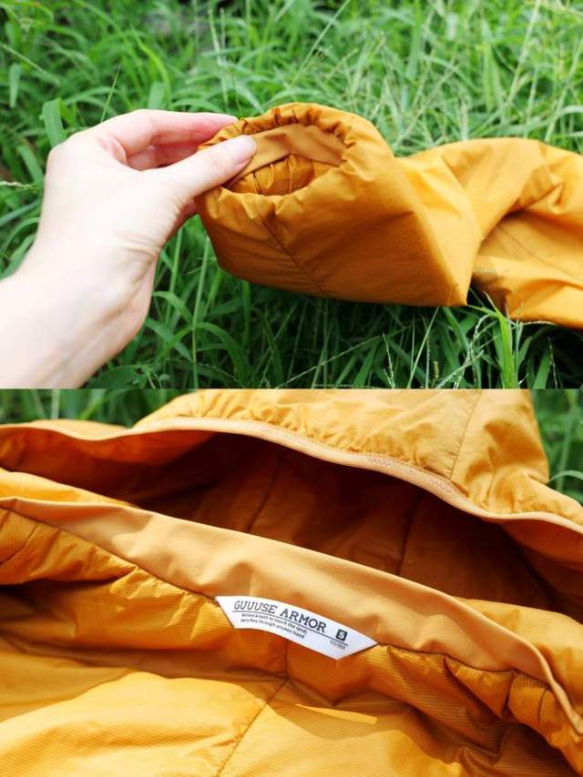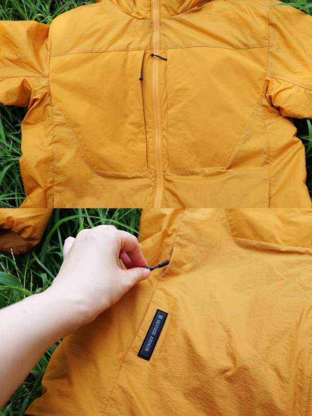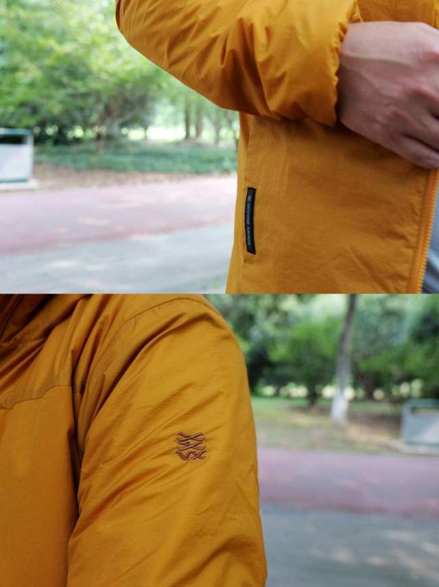 这件棉服用的是金标Primaloft® Gold填充,大身填充60g,帽子、袖下片和侧片填充40g。这样设计的好处就是:保暖的地方够暖,该轻便的地方不累赘。比如袖子位置不会鼓鼓的,活动起来非常灵活。