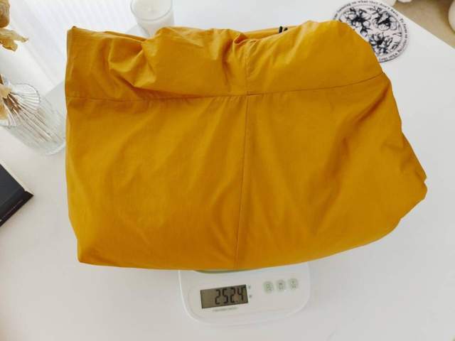 面料选用的是东丽20D AIRTASTIC克轻系列面料,手感轻薄但不廉价。花花用电子秤量了一下,棉服的重量只有252g,连一瓶雪碧的重量都不到!