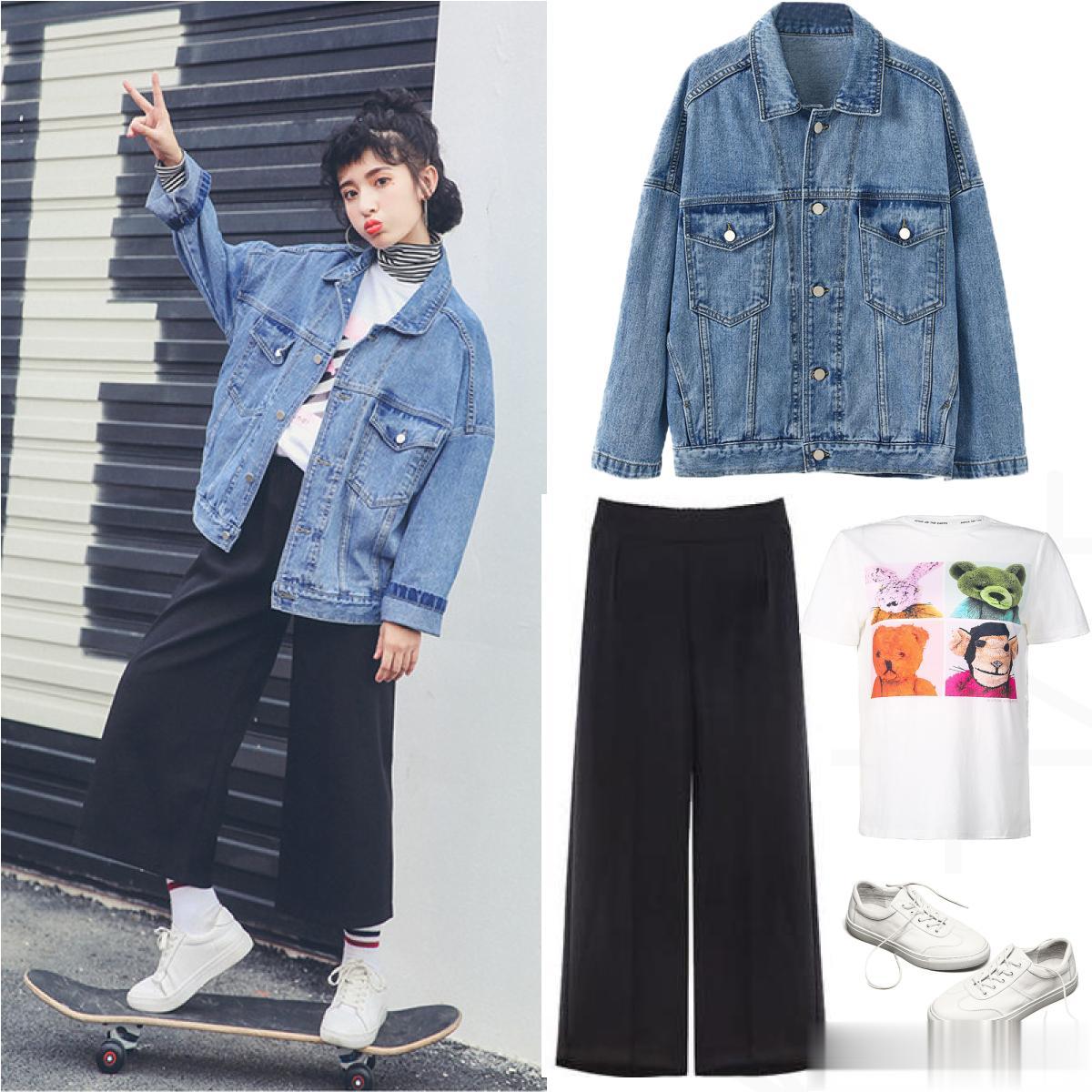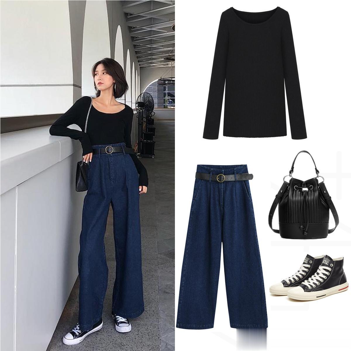 刚柔并济之典范:牛仔阔腿裤是永恒的经典。选择版型挺括、水洗颜色纯净的款式,它能完美平衡休闲与时髦。牛仔的粗粝感能中和上衣的柔软,实现风格上的互补。