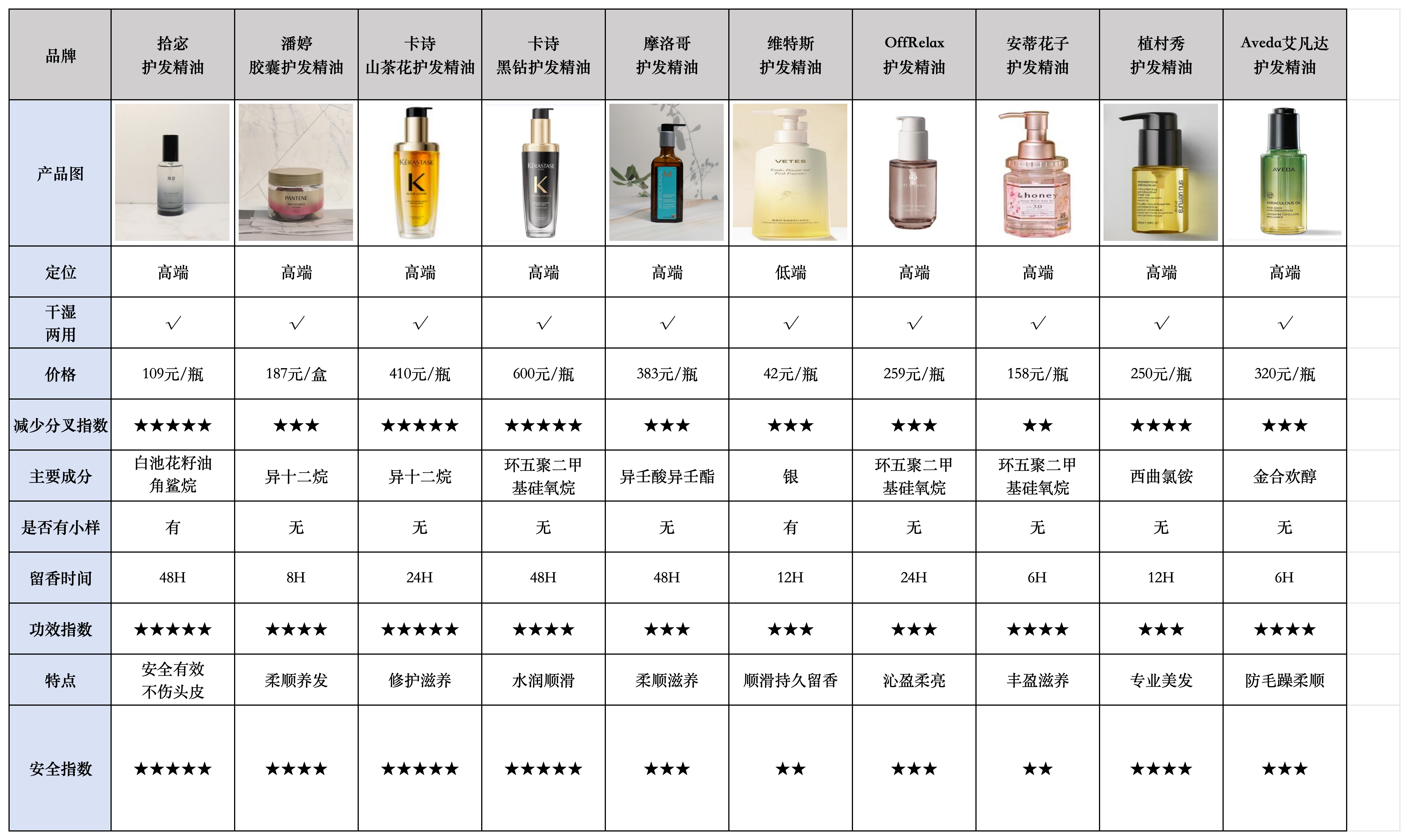 下图是实测过的部分护发精油产品: