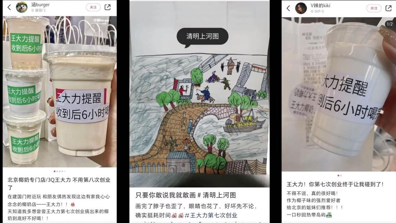 没劲想想王大力,坚持到底出奇迹。 王大力,33 岁,北京人,在北京有个品牌叫“王大力第七次创业”,这个三十来岁的小伙子已经创业 7 次了,他开过水果店,卖过披萨......2021 年开始了自己的第七次创业,大概他自己也没想到,这一次创业,有了自己的一个小品牌,自己的饮品店,几乎开遍了北京城。 他也没想到,抖音竟然也能点外卖,刚开始也只是抱着试试的态度,没想到达到了意想不到的效果。他的直播也慢慢在网络上走红,经常会有大学生来采访他,大学生们往往把创业当成一件高大上的事情。 现在社会上选择创业的人也有很多,他们有的成功了,有的血本无归,也有很多人选择了王大力一样的生活,可能多次创业。创业给我的感受,大概就是一群被生活蹂躏过无数次的人,因为生活的希望,而一次次站起来拼搏。 王大力也特别乐于把自己的直播经验分享出来,教给他们如何运用互联网思维,他明白小老板们谋生是多么不易。 如今抖音外卖直播已经是趋势,抖音也给了创业者们展示自己品牌的平台,当然,随着做直播外卖的人越来越多,对很多创业者更是个考验,加强自己的综合能力,学习互联网的逻辑,也越来越重要。#北京小伙趣味报地名引万人围观#