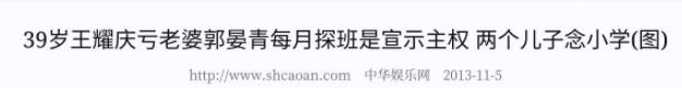 中华娱乐网:39岁王耀庆亏老婆郭晏青每月探班是宣誓主权 两个儿子念小学