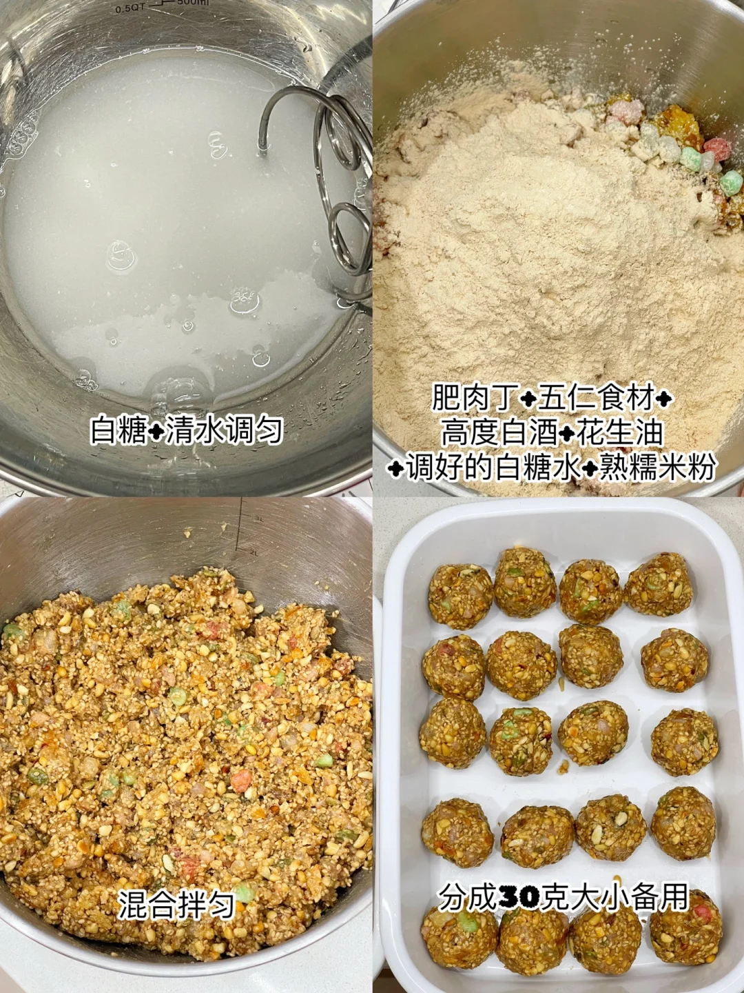 🔹制作方法:以上所有材料混合拌匀,分成30克大小备用。