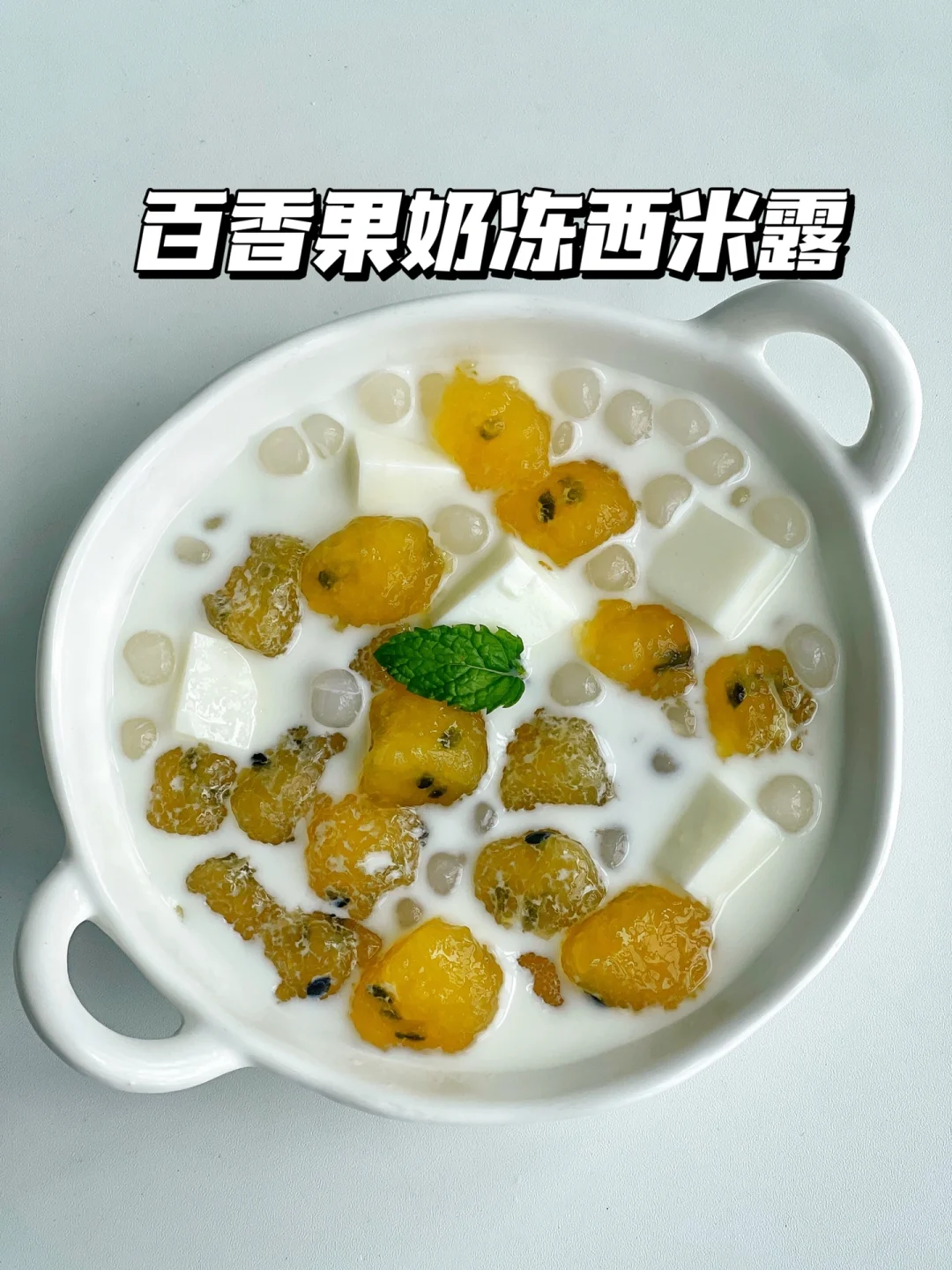 百香果奶冻西米露:百香果啵啵球+奶冻+西米+牛奶