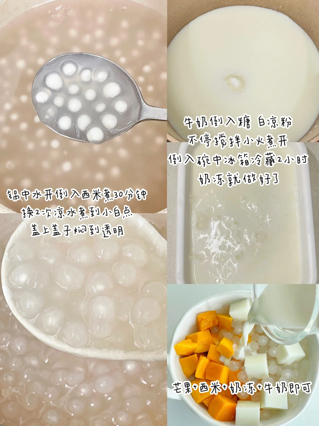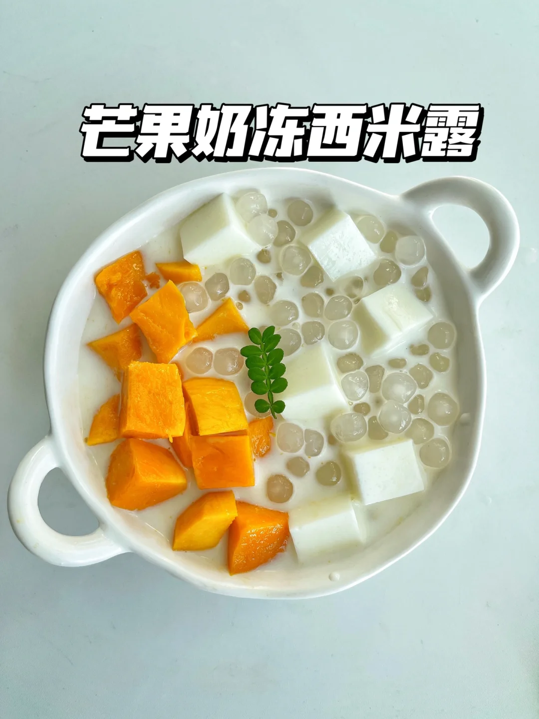 芒果奶冻西米露:芒果+奶冻+西米+牛奶