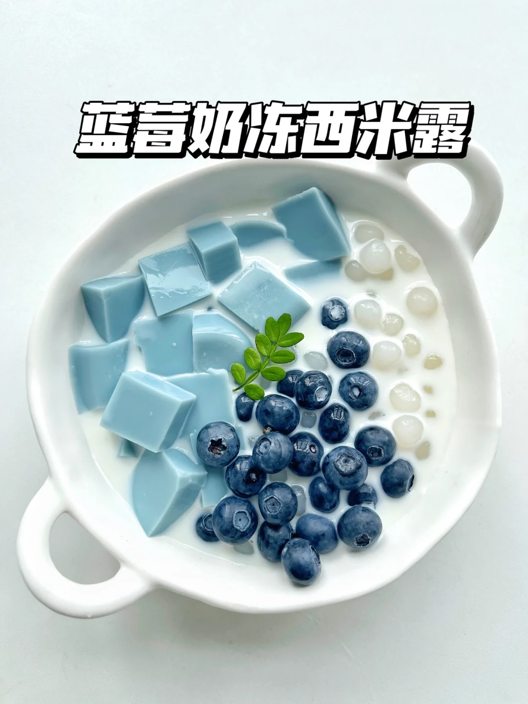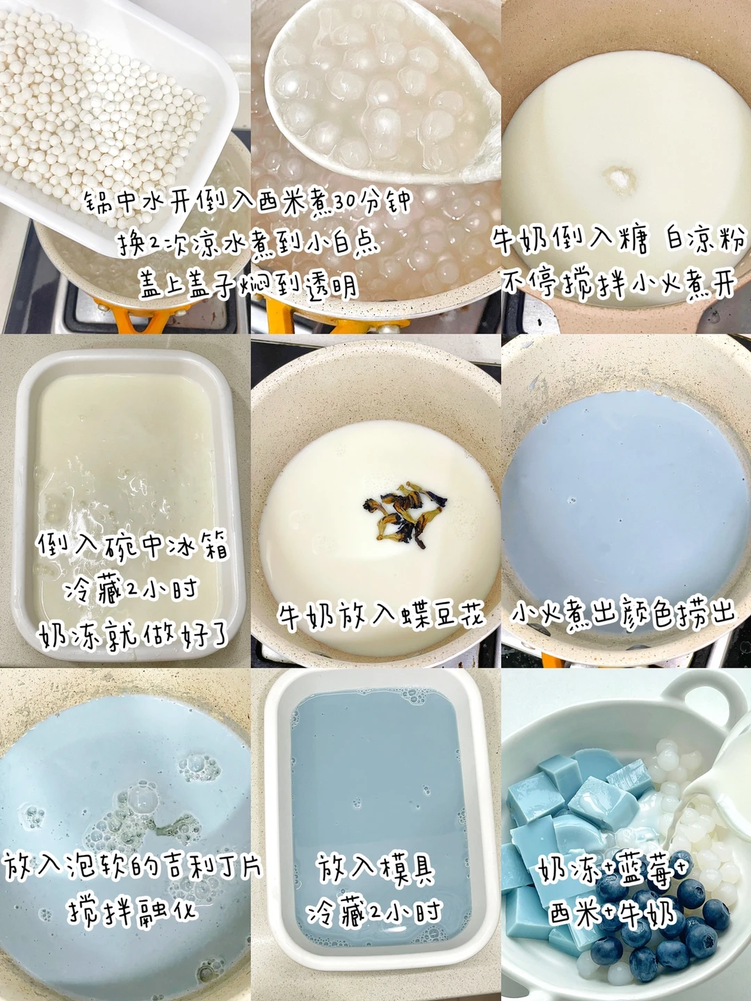蓝莓奶冻西米露:蓝莓+蓝莓奶冻+西米+牛奶