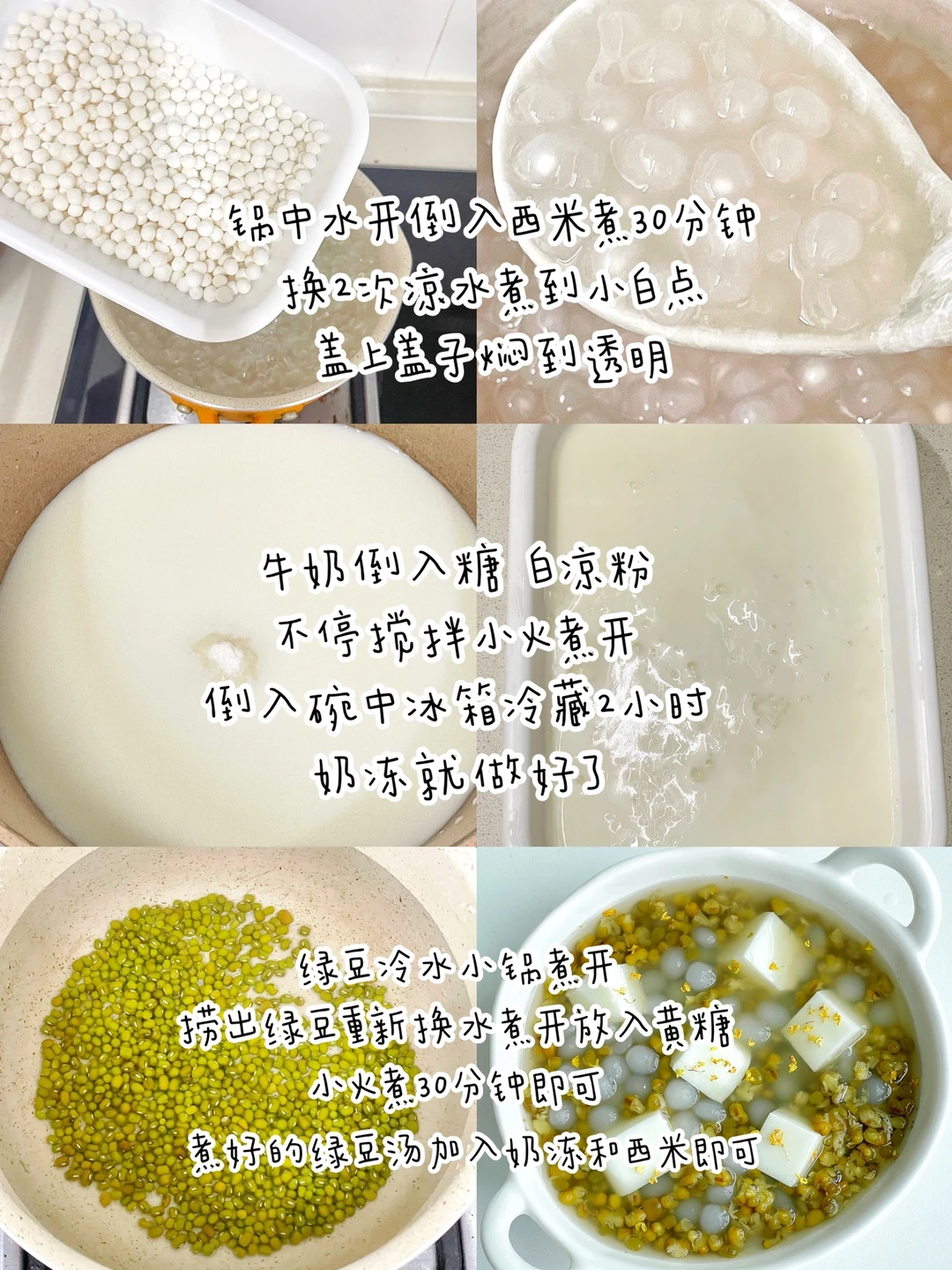 绿豆奶冻西米露:绿豆沙+西米+奶冻