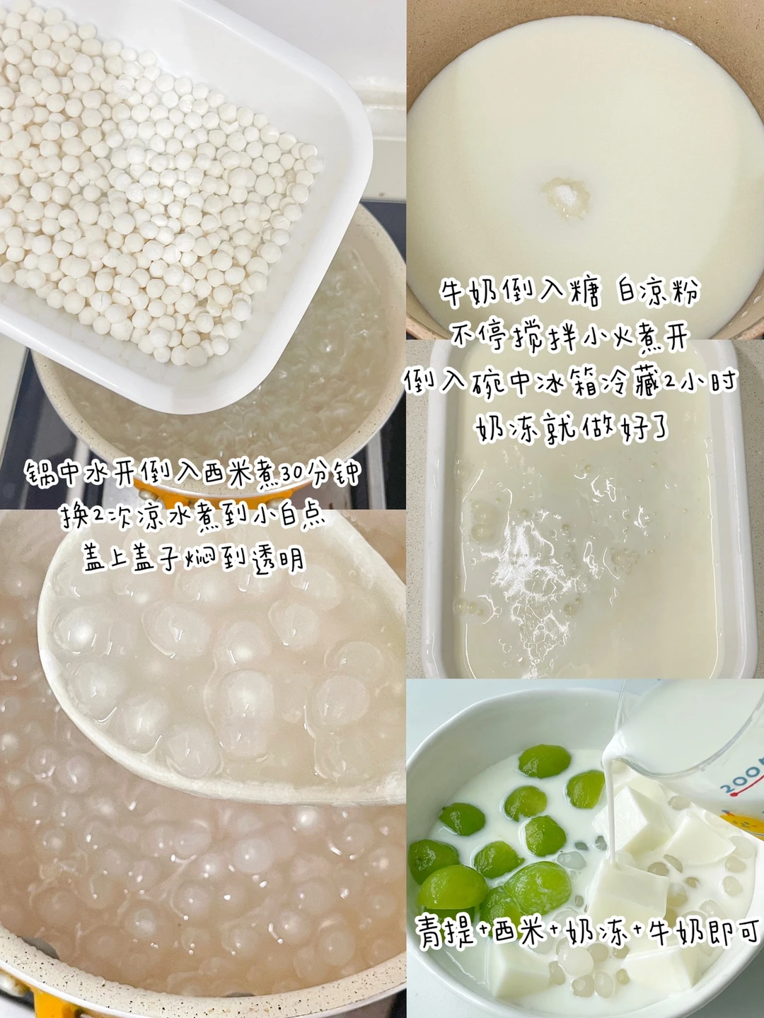 青缇奶冻西米露:青提+奶冻+西米+牛奶