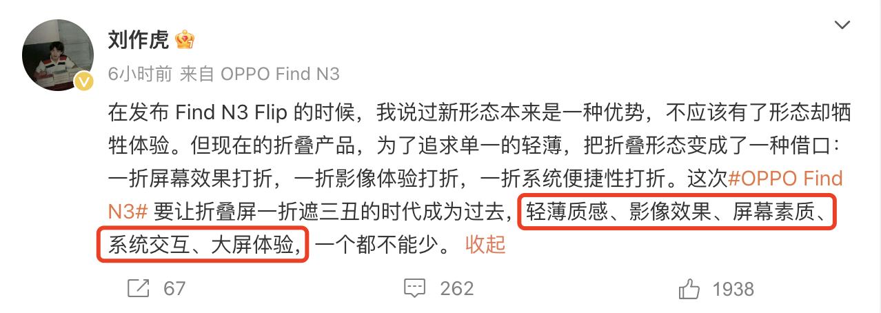 赢麻了!张老板公布了OPPO Find N3的实拍图,对比主流折叠屏旗舰机,感觉优势还是挺明显的。看了一下实拍图,有几款拍出来的画面已经模糊成一片了,甚至还出现了色彩严重错误的情况,相对来说,OPPO Find N3拍出来的画面更清晰,细节丰富,而且画面色彩看着就很舒服,估计这就是OPPO主打的影调效果吧? 通过网上爆料图来看,OPPO Find N3这次的影像实力不容小觑,毕竟有着硕大的相机模组,而且还有潜望长焦镜头,估计能跟直板旗舰机碰一碰了。而且根据张老板的说法,Find N3这次在机身、屏幕、交互等方面会有不小的惊喜,难怪那么自信。#OPPO Find N3发布会10月19日召开# #OPPO Find N3#