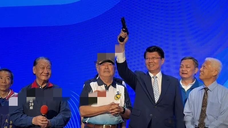 12月25日,国民党台南市党部退伍军人委员会今天举办岁末感恩餐会,为台南市长参选人谢龙介造势。副主席季麟连到场力挺,并赠送一把手枪模型。