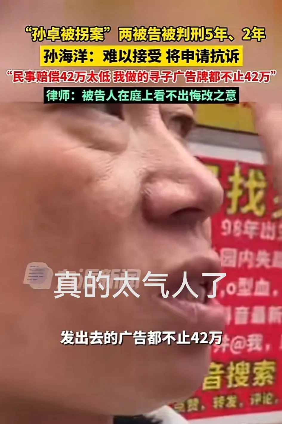 孙卓被拐案结果出来后,两被告看不到一丝丝的悔改之意。