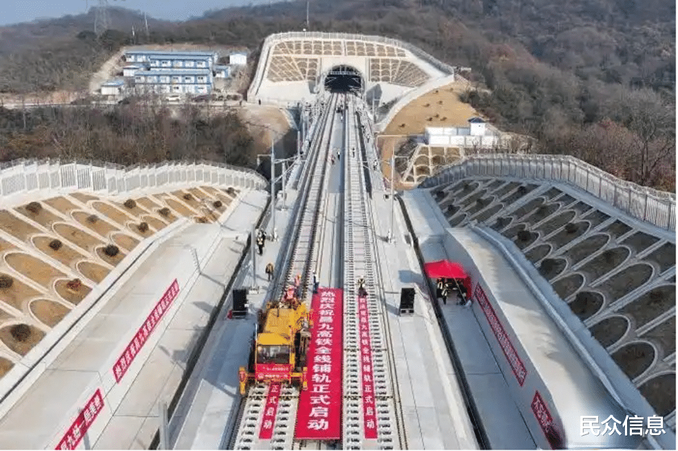 2025年12月19日,在江西省九江市柴桑区的(南)昌九(江)高铁尖山岭隧道铺轨施工现场,随着铺轨车将第一对500米长钢轨平稳铺设到位,标志着昌九高铁正式进入全线铺轨阶段。昌九高铁全线共计需要完成295.28公里的钢轨铺设任务,预计2026年5月完成。铺轨施工结束后,昌九高铁将进入轨道精调、静态验收阶段,为下一步联调联试和开通运营打下基础。