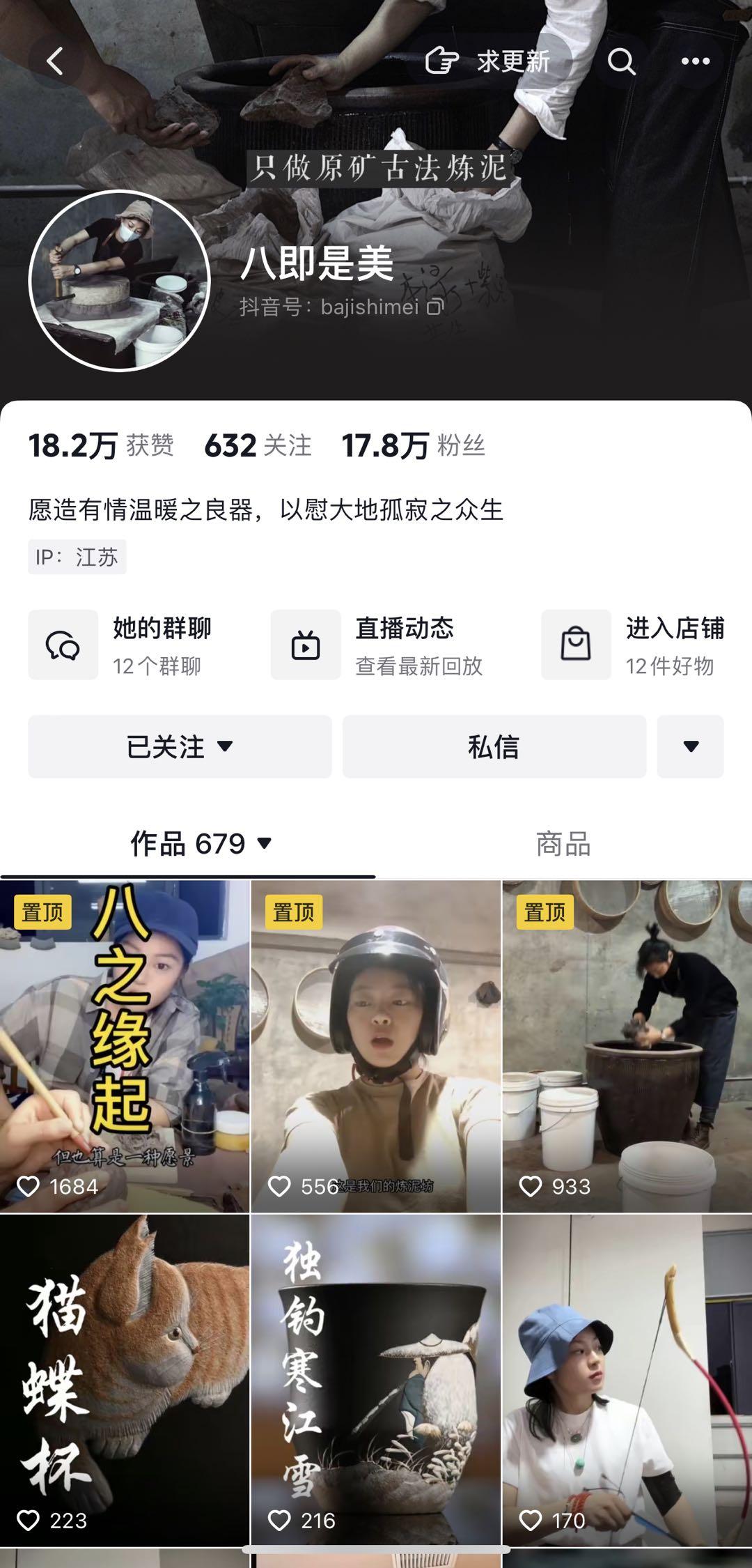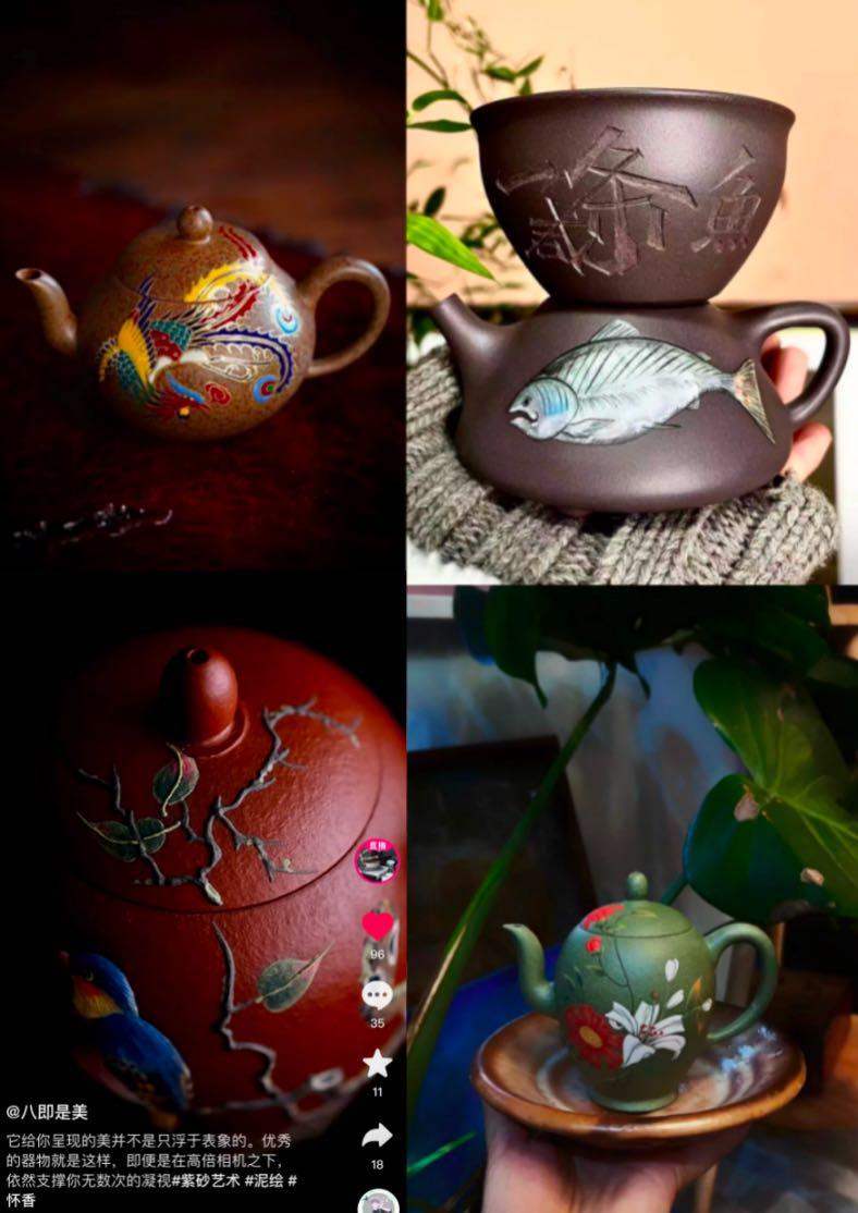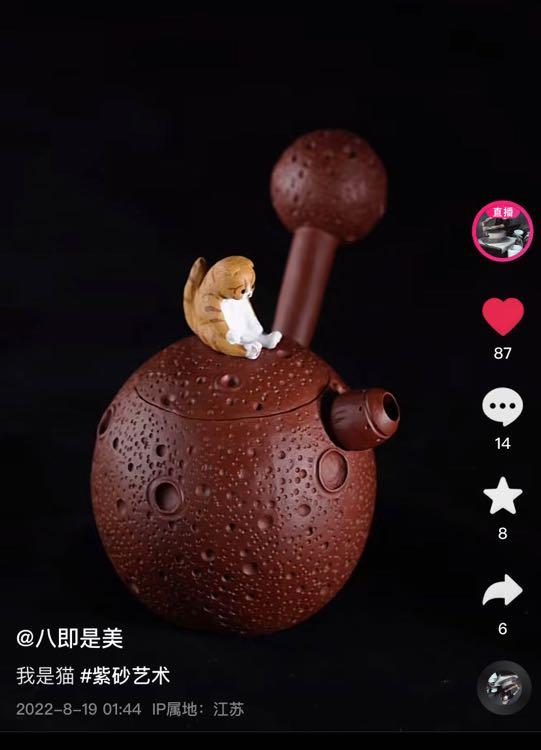 关于宜兴陶瓷的传说有很多,从四五千年前的原始社会,就有陶瓷出现了,一直到清代陶瓷发展迅速。而宜兴紫砂,则开始于北宋时期,清朝开始繁荣,一直到民初都是家庭作坊式的生产,后来战争影响,一直到新中国成立,紫砂产业开始恢复,并逐渐繁荣。 宜兴紫砂壶,在清朝已经是皇家用品,近几年被列为国家非物质文化遗产。 虽然紫砂壶,技艺十分复杂,幸运的是,依旧有很多手工匠人在坚持自己的热爱,如今也有很多年轻人接触到紫砂壶创作的技艺,并且加入了很多现代元素。 90后的橘子就是其中之一,她知道紫砂技艺门槛高,所以早就做好了坚持下去的准备,没有收入,就用空余时间去兼职。 学成以后,橘子去了西藏,她说”紫砂是个载体,陶艺也是,银壶也是,只有懂得更多,才能真正的创作,不然就是闭门造车。“ 后来橘子和志同道合的朋友一起创办了“八即是美”,八在藏地文化中是圆满的意思。 从2020年十月,抖音推出了“看见手艺计划”助力传统手艺被更多人看见,通过这个计划,加上橘子的创新和紫砂壶的品质,她的抖音店铺好评率,复购率也都不错。 除了紫砂壶之外,她还坚持要符合年轻人的喜好,创办了很多紫砂手办,《小王子》的星球壶,饶漱石的《我是猫》系列,还有很多小动物,都被橘子做成了紫砂。#600岁的紫砂壶被女孩做成动物园#