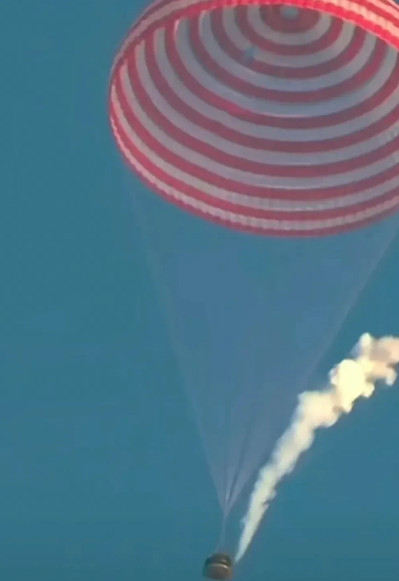 有人说,神舟十六号的返回失败了,因为在返回舱落地之前,出现了惊险的一幕,降落伞打开后,舱体后面突然喷出了白色的烟雾,因此怀疑舱体被烧透了。