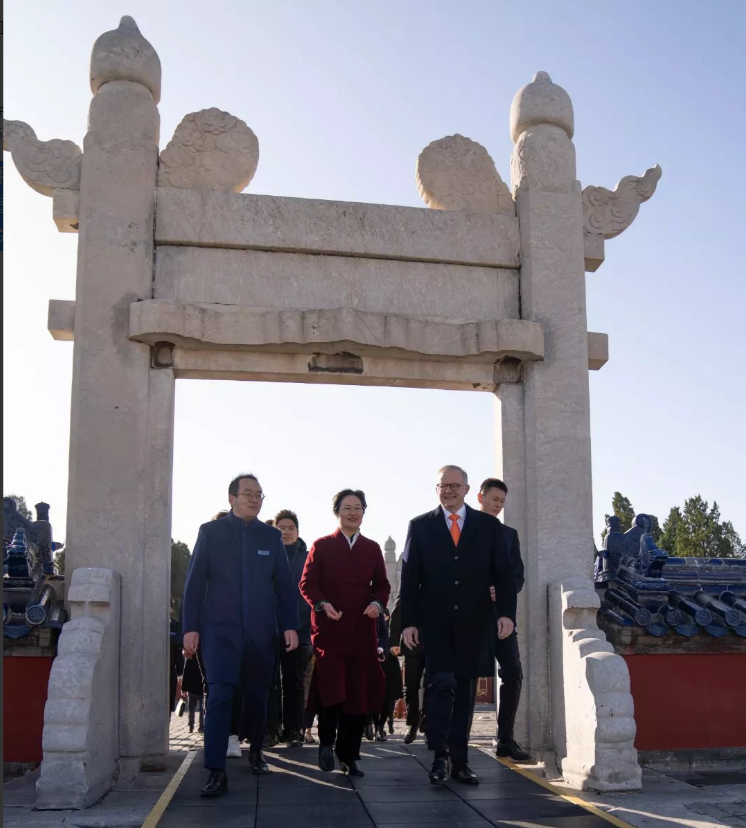 饶有兴致!澳大利亚总理阿尔巴尼斯和外长黄英贤同游天坛。值得一提的是,故宫和长城,