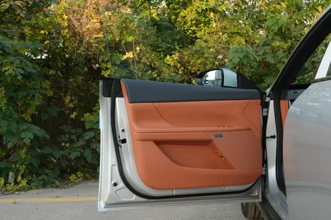 内饰风格简约但不简单。中控台几乎找不到物理按键,功能高度集成于15.6英寸的悬浮式中控大屏和10.25英寸的全液晶仪表盘内。车内大量使用了软性材质包裹,搭配触感细腻的麂皮面料和精致的金属饰条,营造出一种高级且温馨的氛围。新车内饰气味控制得不错,几乎闻不到刺鼻的“新车味”,这得益于环保材料的应用。