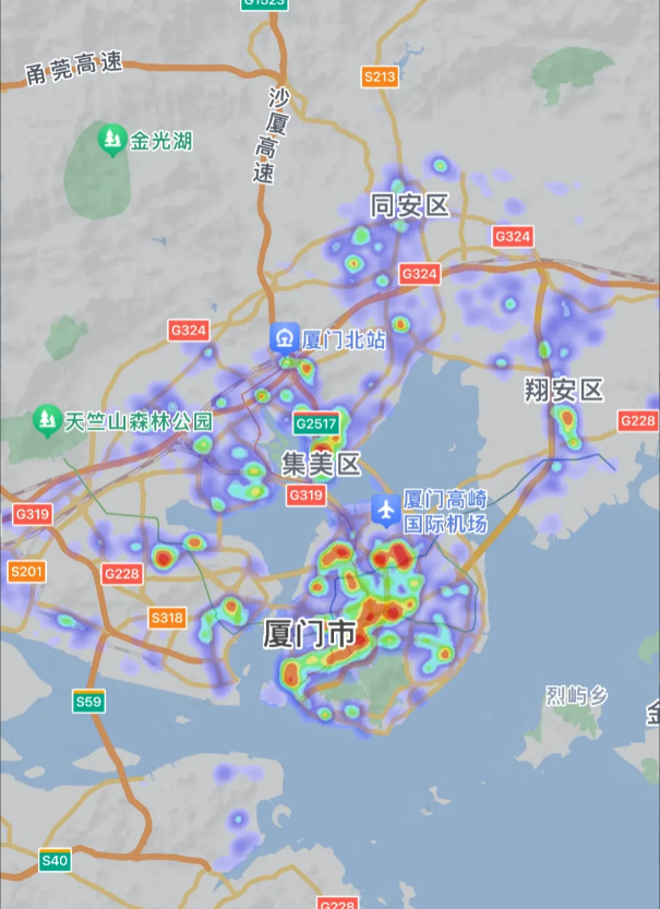 沈阳和厦门都是副省级城市,且GDP处在同一水平。但是城市规模还是存在很大差距的,原本以为厦门的城市规模会比沈阳大,但是对比一下才发现,原来沈阳还是很有实力的。 同时段同比例沈阳和厦门两座城市的热力图对比,沈阳的城市面积以及城区人口密度都要胜过厦门。来看厦门的发展还是保守了,这么多年城市中心还是在岛内和集美区,翔安、同安、海沧等区域发展太慢,都没有连成一片。