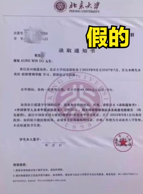 明学昌估计也被忽悠了,自己的孙子根本没有上北大,估计录取通知书也是假的。搞那么大规模的仪式,结果被狠狠打脸了。 针对网传明学昌之孙,明国安之子,明学忠被北大录取。实际上今年该消息发布之后,就有不少教育人士表示:干电诈的明学昌,可能被做假证的给骗了,白所成给的1万块也打水漂了。 明学昌当时在宴会上发表了讲话说;“果敢历代180多年的历史当中未曾出现过考取中国北京大学的人,自己的孙子明光忠是诸多果敢学子中脱颖而出的唯一一人,这将是他一生用金钱买不到的光荣,为此感到骄傲。” 没想到,现在北大已经正式回应,这个录取通知书根本就是假的。明学忠不但不是北大的学生,就连申请记录都没有。 北大宣传部回应说:“现在我们都知道明学昌是电信诈骗嫌犯,大家都不要相信一个诈骗嫌犯的话。