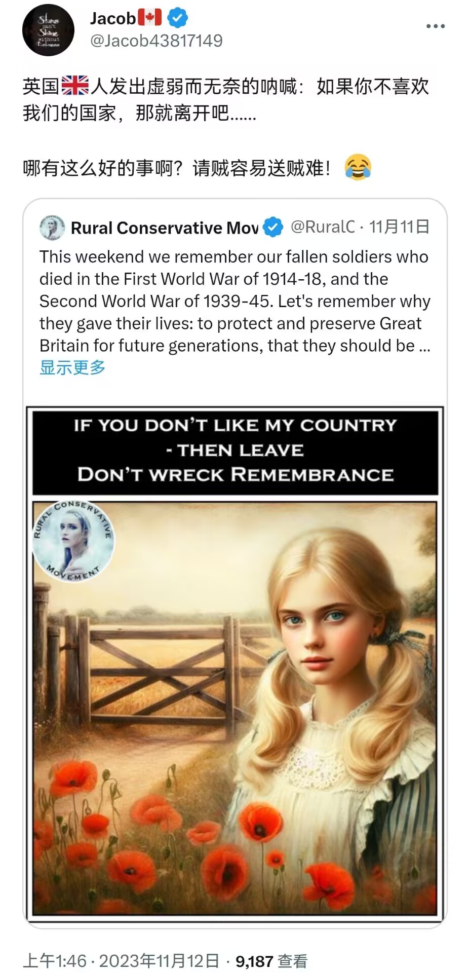 这些为了尽孝道,而捍卫曾经侵略中国领土而死掉的英国军人的职业反贼,来看看这只贱种