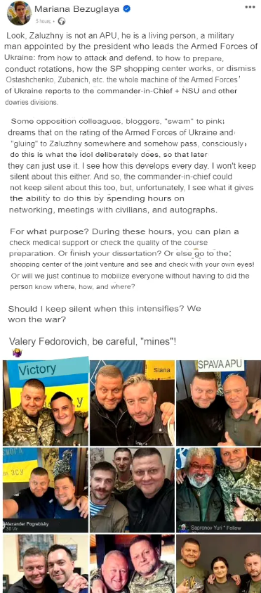 乌克兰最高拉达副议员:扎卢日内将军,你应该要小心来自总统府和泽连斯基团队的攻讦了